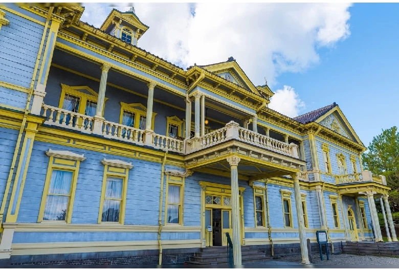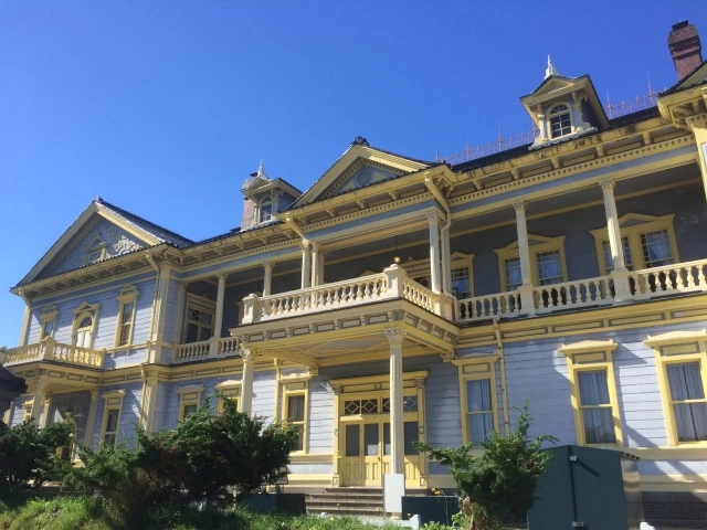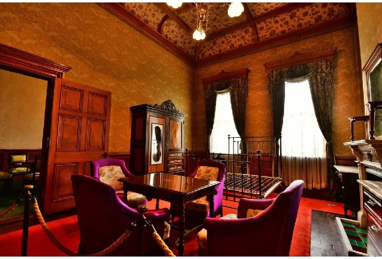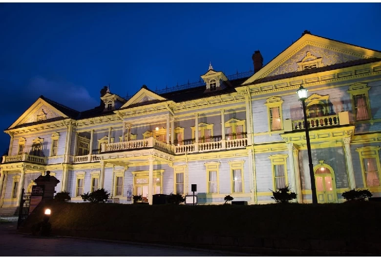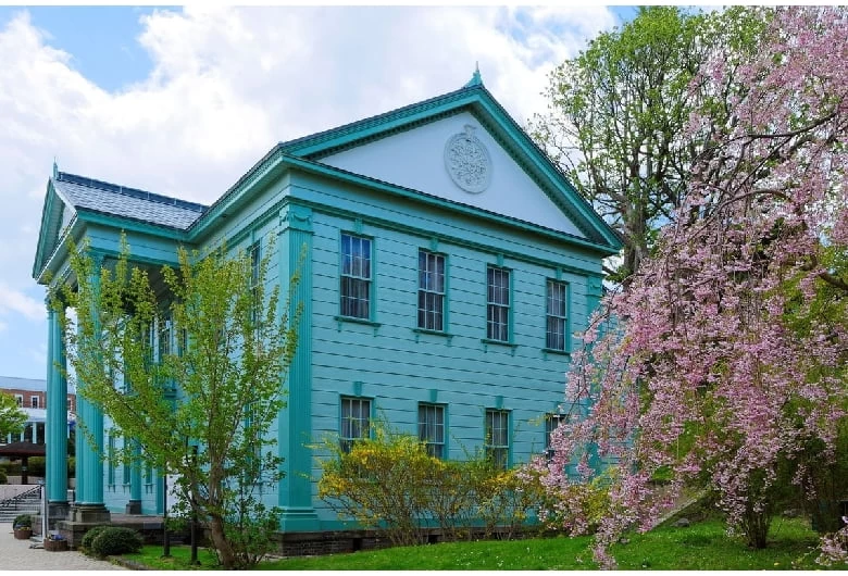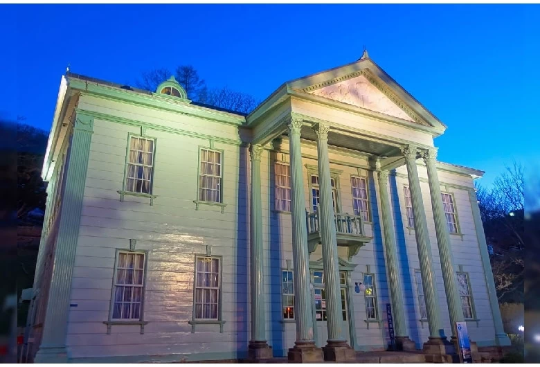 「旧函館区公会堂」は、函館区の公会堂として1910年(明治43年)に建てられた木造二階建てのアメリカコロニアル風洋館。現存する明治時代の公会堂建築の数少ない遺構で、国の重要文化財に指定されています。保存状態が良い華やかな家具も残されていますよ。バルコニーからは、素晴らしい景色を望めます。