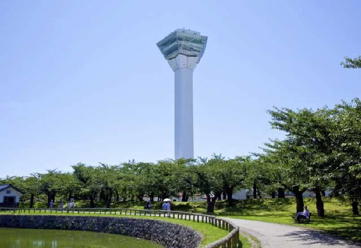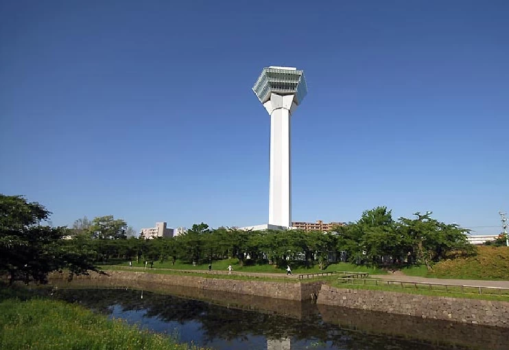 五稜郭公園に隣接する高さ107mの「五稜郭タワー」。360度ガラス張りの展望階からは、星形の五稜郭を含めた市内の景色を一望でき迫力満点。展望2階にある五稜郭歴史回廊では、フィギュアやパネルなどによるわかりやすい解説により、函館の歴史を楽しく学べます。