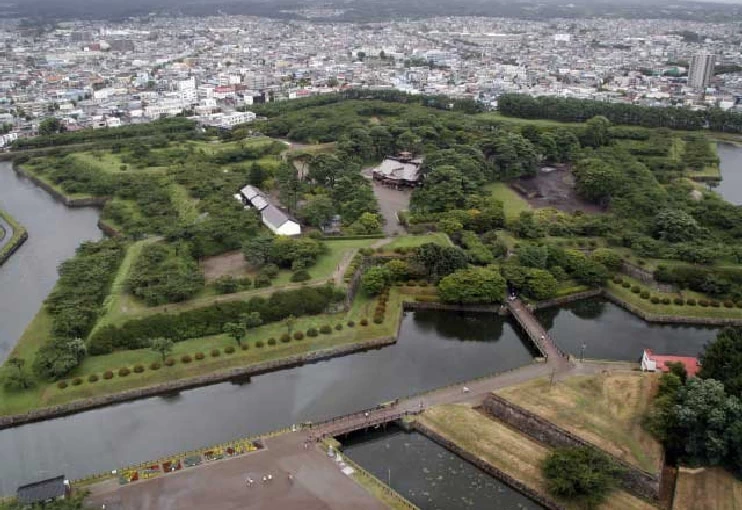 函館の人気観光スポット「五稜郭公園」は、箱館開港後の警備、蝦夷地防衛などを目的に元治元年(1864年)に完成した五角形の城郭で、現在は公園として開放されています。蘭学者・武田斐三郎によって設計され、春は桜、冬はイルミネーションで彩られていますよ。