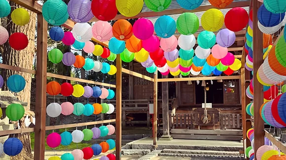 現在の本殿は1711年に再建されたもので、花巻市の有形文化財に指定されています。境内は季節ごとにカラフルな提灯やビー玉などで美しく飾られ、SNS映えすると話題です。