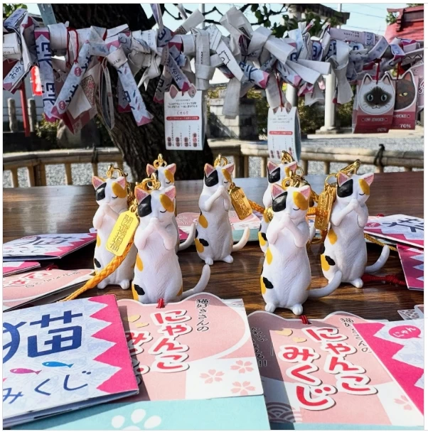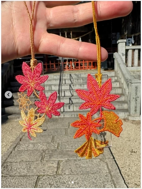 さらに、この神社は「猫の神社」としても知られています。境内には「社務ネコ・シル」が暮らしており、多くの参拝者に愛されています。御朱印やおみくじなどにも猫のモチーフが取り入れられており、授与品の種類も豊富です。猫の姿をあしらったクリア御朱印や、季節の花や紅葉の刺繍があしらわれたアクリルお守りなど、かわいらしい品々が並びます。