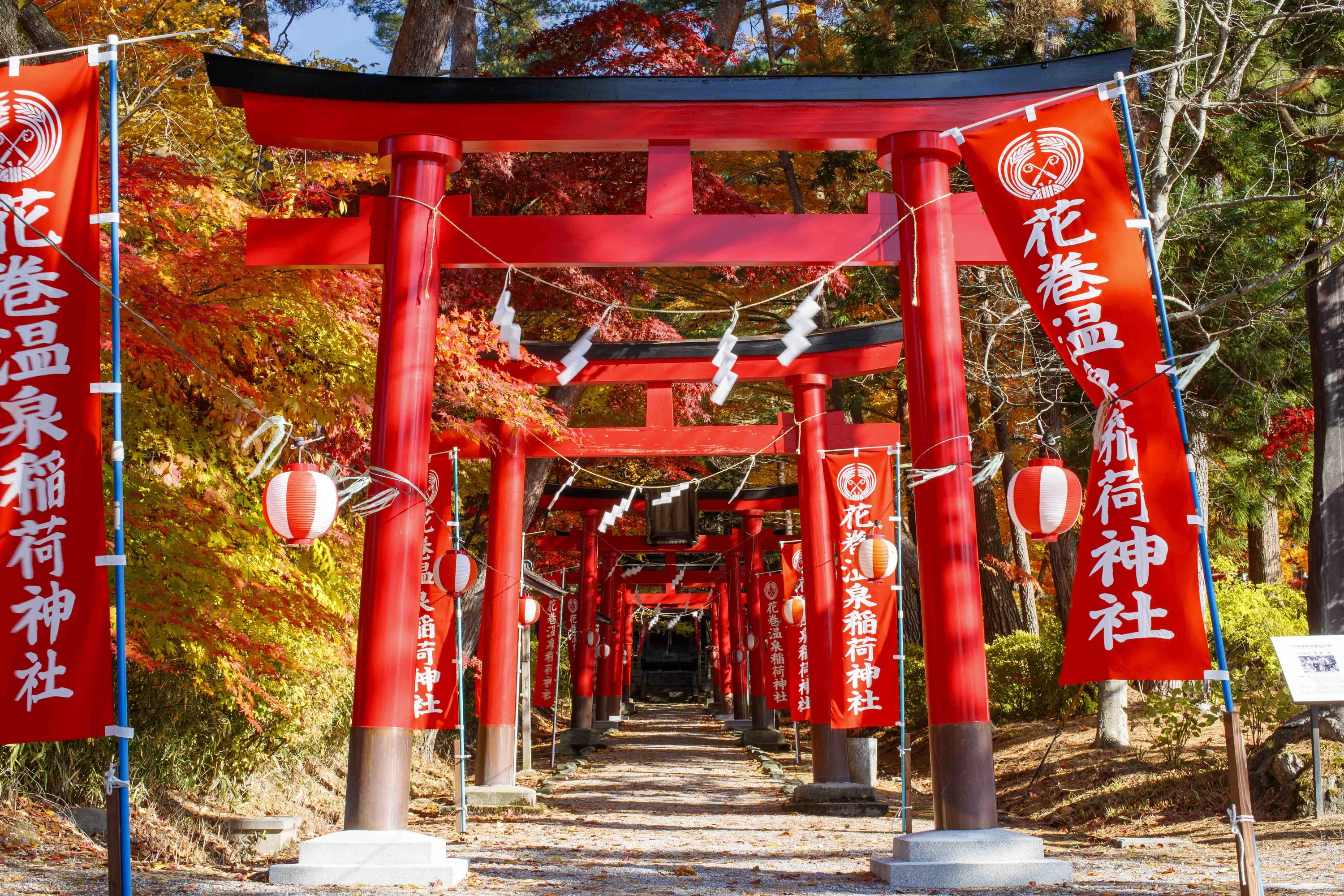 御祭神は宇迦之御魂神。五穀豊穣や商売繁盛の神として信仰を集め、花巻温泉の守り神として親しまれています。