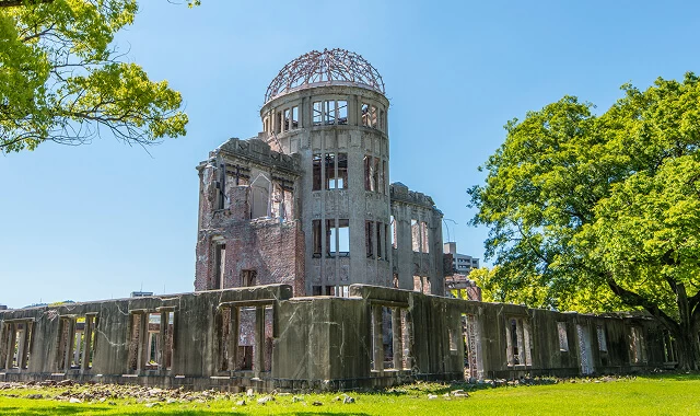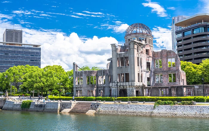 「原爆ドーム」は、1996年にユネスコ世界遺産に登録された、原子爆弾の惨禍を現代に伝える遺跡です。元々は産業奨励館として利用されており、広島県内の物産品を展示、販売などをしていました。残された壁面は、原爆が真上で炸裂し、ほとんどの力が垂直方向にかかったために倒壊を免れたものです。広島駅からは路面電車で約16分のアクセスで、外観を通年自由に見学できます。原爆ドーム周辺の平和記念公園の散策も、終日無料で可能です。