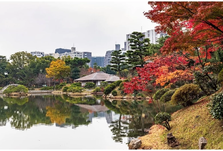 「縮景園(しゅっけいえん)」は、茶人として知られる浅野藩家老・上田宗箇の手によって築成された大名庭園です。園内では、春は桜や桃、冬は梅や椿など、季節ごとに美しい花々が咲き誇ります。季節の行事や花にちなんだ茶会も開催されており、四季折々の景観に包まれながら伝統的なお茶やお菓子を堪能することも可能です。