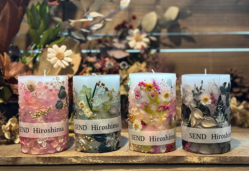 「SEND Hiroshima(センド ヒロシマ)」は、花や香りを選んでキャンドル作りができるお店です。店内ではキャンドルワークショップを開催しており、約10種類の体験コースから好きなものを選んで、オリジナルのキャンドルを作ることができます。キャンドルに使用するドライフラワーは、自分の好きな花を摘むことにこだわり、非日常体験ができると女子に人気です。女子旅の思い出に、お揃いのオリジナルキャンドルを作りましょう。