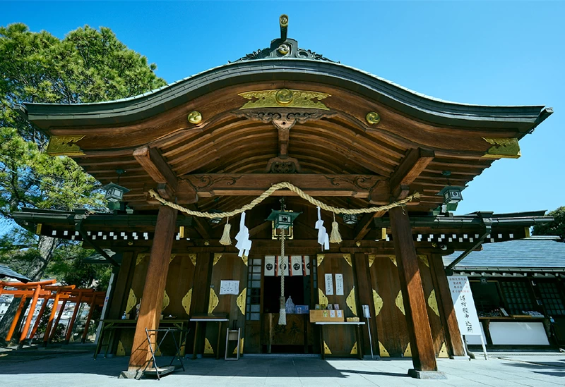 「鶴羽根神社」は、八幡三柱の神と妹背二柱の神を御祭神に祀る神社です。御神徳には、厄除けや子授け、縁結びなどがあることから、結婚式や安産祈願の場としても親しまれています。授与所では季節限定のお守りや御朱印を頒布。春は「華守」や「さくら柄の御朱印帳」、夏は「クリア御朱印」や「風鈴」などがあり、どれもデザインが可愛いと人気です。ほかにも「金の願い鶴」は、鶴の鳴き声が遠くまで届くことから祈願が成熟するといわれています。