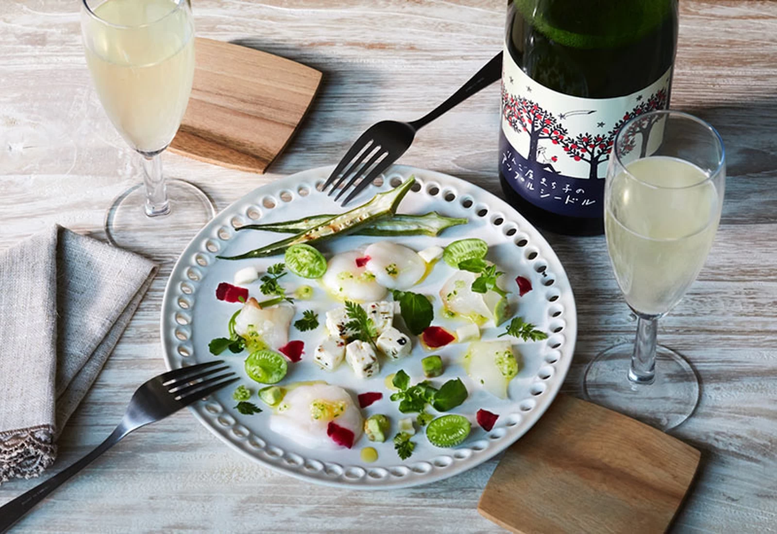 「アップルワイン」は、岩手県で100年以上の歴史を持つ「陸前高田市米崎りんご」を使用し、ふじや王林など数種類のりんごをブレンドして醸造されています。穏やかな酸味の癒やし系ワインで、爽やかなりんごの香りとすっきりとした飲み口が特徴。白身魚や貝のお刺身など、三陸の海産物との相性も良好です。岩手県の土地の恵みを感じさせるワインとして、陸前高田のお土産にぴったりです。