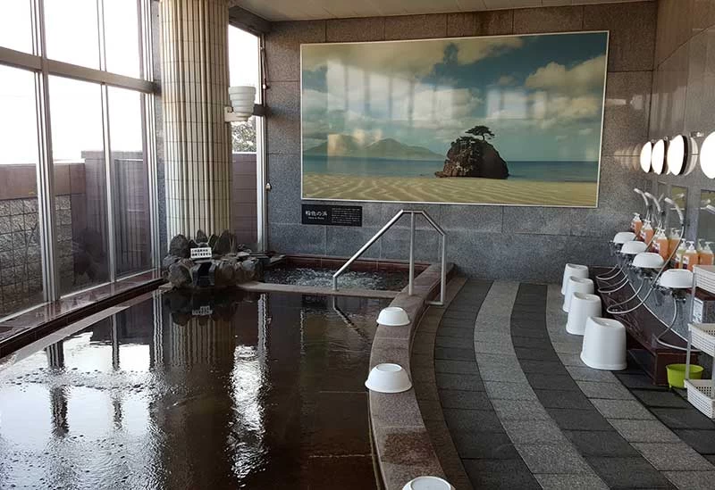 出雲縁結び空港より車で約10分、出雲大社からは車で約12分の場所にある人気の日帰り天然温泉施設。疲労回復・健康増進・慢性皮膚病改善などの効果が期待できるアルカリ性単純温泉は上がった時に肌触りがよいと感じる方もいます。体の芯まで温めてくれる人工高濃度炭酸泉露天風呂やサウナもあり、お風呂上りは食事も可能です。