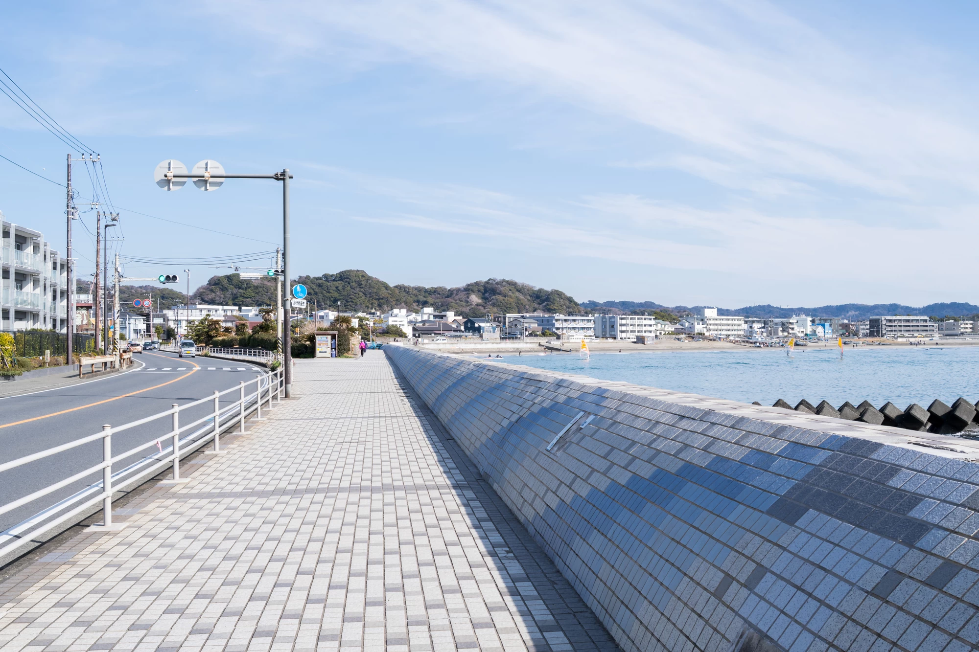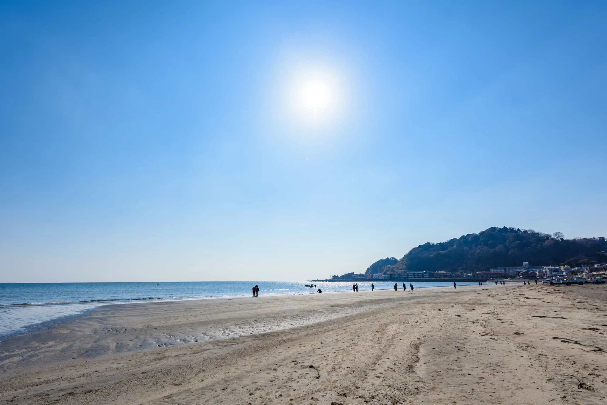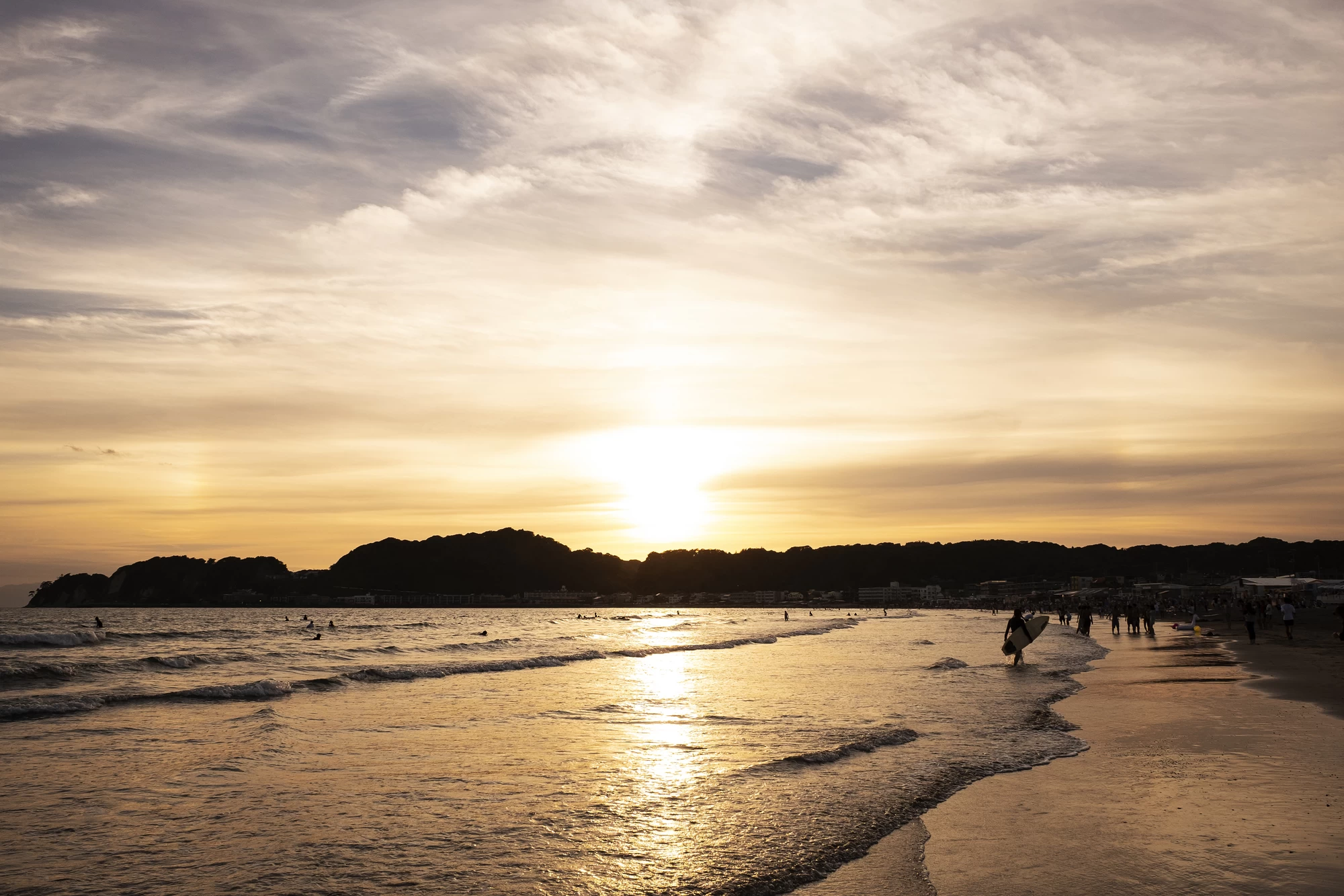 「由比ヶ浜」は、アジア初の「ブルーフラッグ認証」を取得した清潔な海岸です。砂浜は広く、旅行の合間にお子さんが砂遊びでリフレッシュできます。日が沈む直前のマジックアワーには、淡いオレンジから群青へと移ろう色のグラデーションが広がり、思わず息をのむ美しさです。とくに冬の由比ヶ浜は、夕暮れ時になると空と海が溶け合うような光に包まれます。和田塚駅から徒歩約5分とアクセスもしやすく、夕方の静かな時間帯は人も少ないため、家族で一日の締めくくりとして過ごせるでしょう。