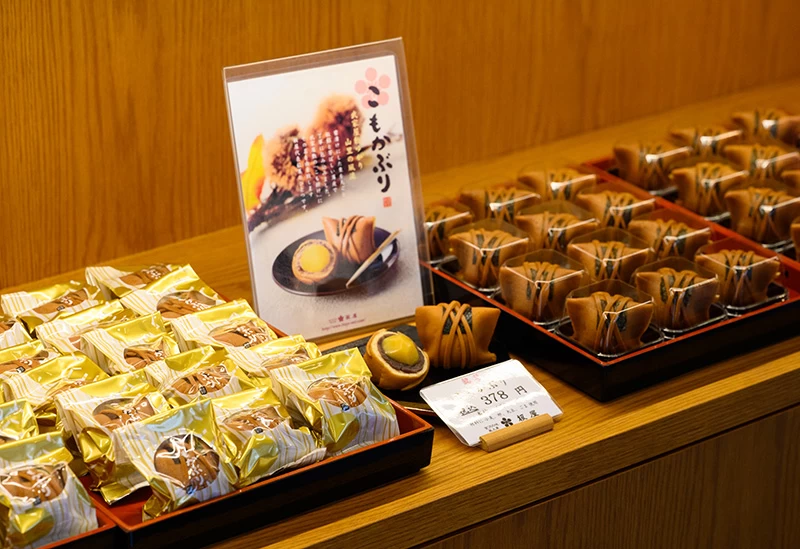 金沢の老舗和菓子店「板屋 本店」の看板商品は、冬の風物詩“こも掛け”を表現した和菓子「こもかぶり」。職人が大粒の栗を丸ごと香ばしい生地で包み、どこか懐かしさ漂う味わいが楽しめます。本店では実演販売も行われ、焼きたてを味わえるのも魅力。訪問前に公式サイトで時間を確認して立ち寄りたいところです。さらに、甘露煮の栗を贅沢に使った蒸しカステラ「香林」も評判で、手土産や贈答、自分へのご褒美にもぴったりです。