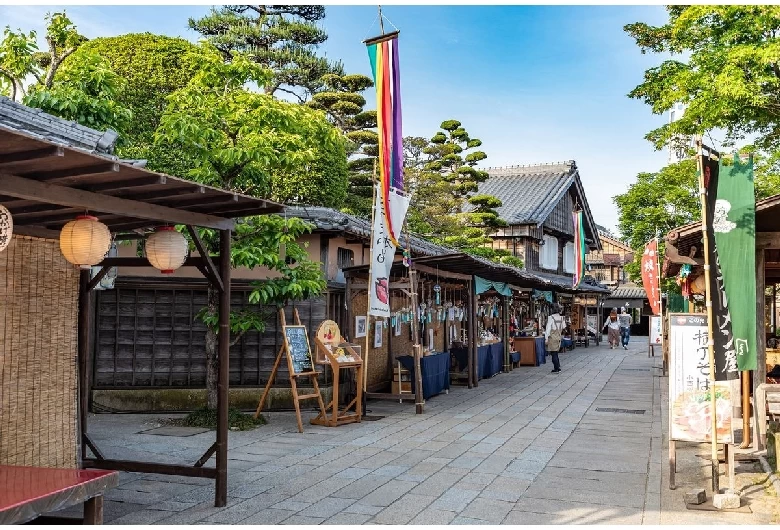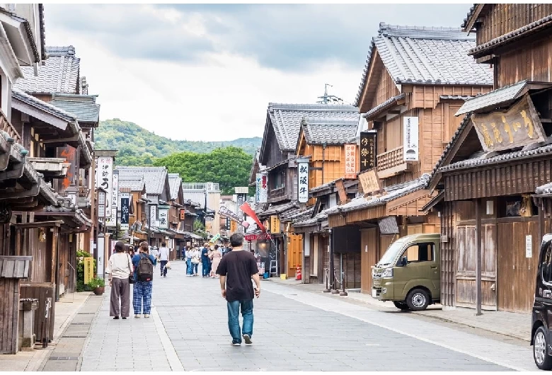 「伊勢神宮 おはらい町・おかげ横丁」は、内宮宇治橋前に広がる門前町です。約800m続く石畳の通り沿いには「赤福本店」や「二光堂」といった名店が軒を連ねており、「赤福餅」や「伊勢志摩かりんとー」などのお土産が購入できます。特に、おはらい町の中ほどにある「おかげ横丁」は、年間約480万人以上が訪れる人気の観光地。江戸から明治時代の町家建築が再現された、伊勢の魅力を満喫できるエリアです。