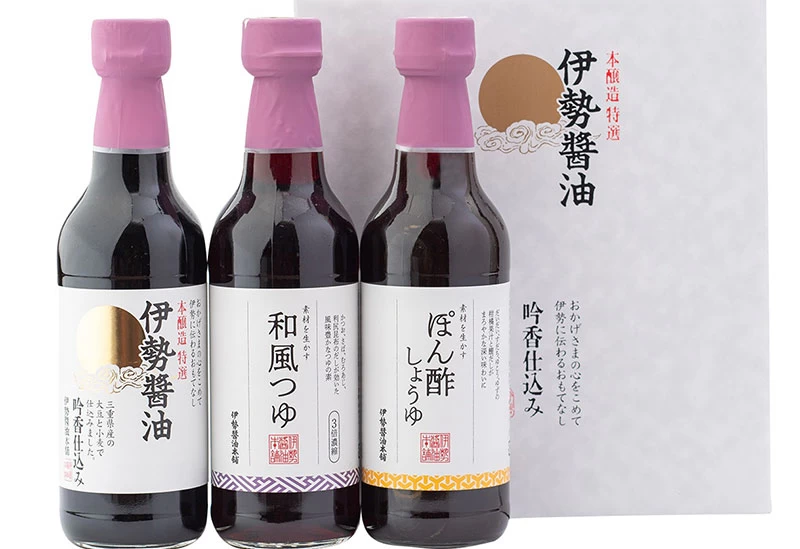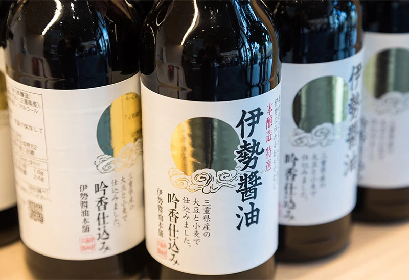 「伊勢醤油本舗(おかげ横丁内)」は、江戸期のおかげ参りで親しまれた醤油を現代によみがえらせた醤油専門店です。看板商品の「伊勢醤油」は、三重県産丸大豆と小麦を多めに使う製法「吟香仕込み」で、塩分16%の濃口ながら華やかな香りを実現しています。ほかにも、三重県産真鯛を発酵させた「鯛醤」や、燻製の香りが楽しめる「燻製醤油」などの商品を販売しています。また、名物の「伊勢うどん」や「伊勢焼うどん」もお土産として購入可能です。