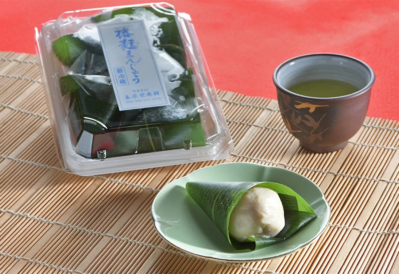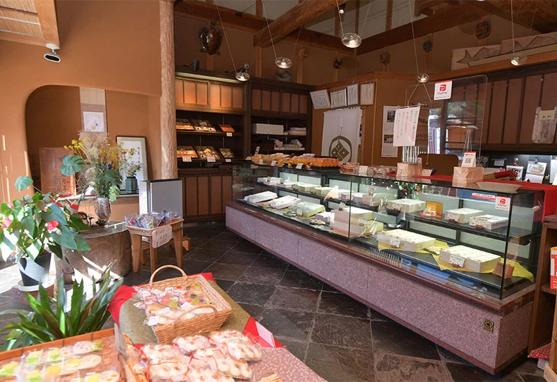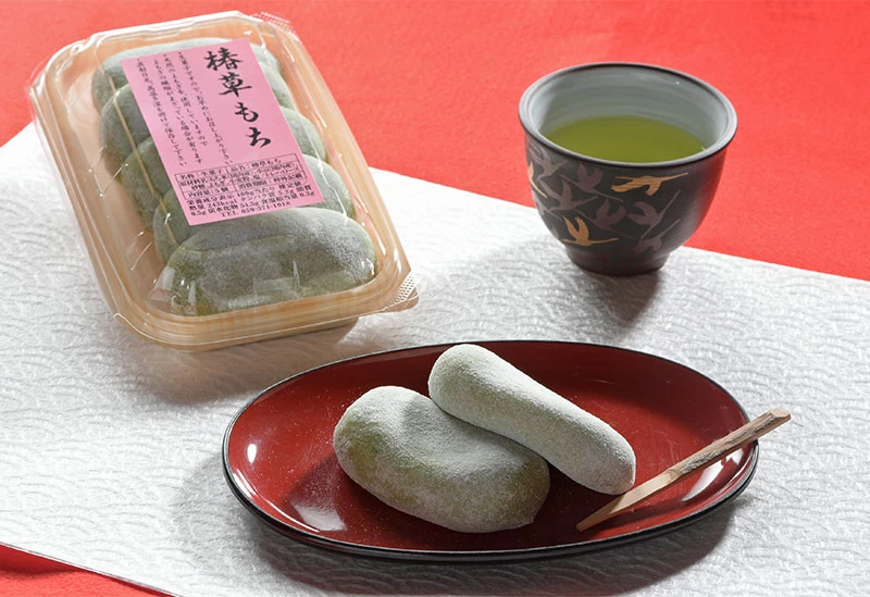 明治35年創業の「春泉堂老舗」は、日本最古の猿田彦大神を祀る椿大神社のふもとで、100年以上にわたり和菓子づくりを続けている老舗です。看板商品の「椿草もち」は、地元産よもぎと国産もち米を使用した縁起の良い小判型の餅菓子で、参拝客の定番土産として親しまれています。また、通年販売される「椿麩まんじゅう」は、こしあん・抹茶・ほうじ茶の3種類を展開。ほかにも、桜餅や柏餅、いちご大福などの季節菓子が並びます。