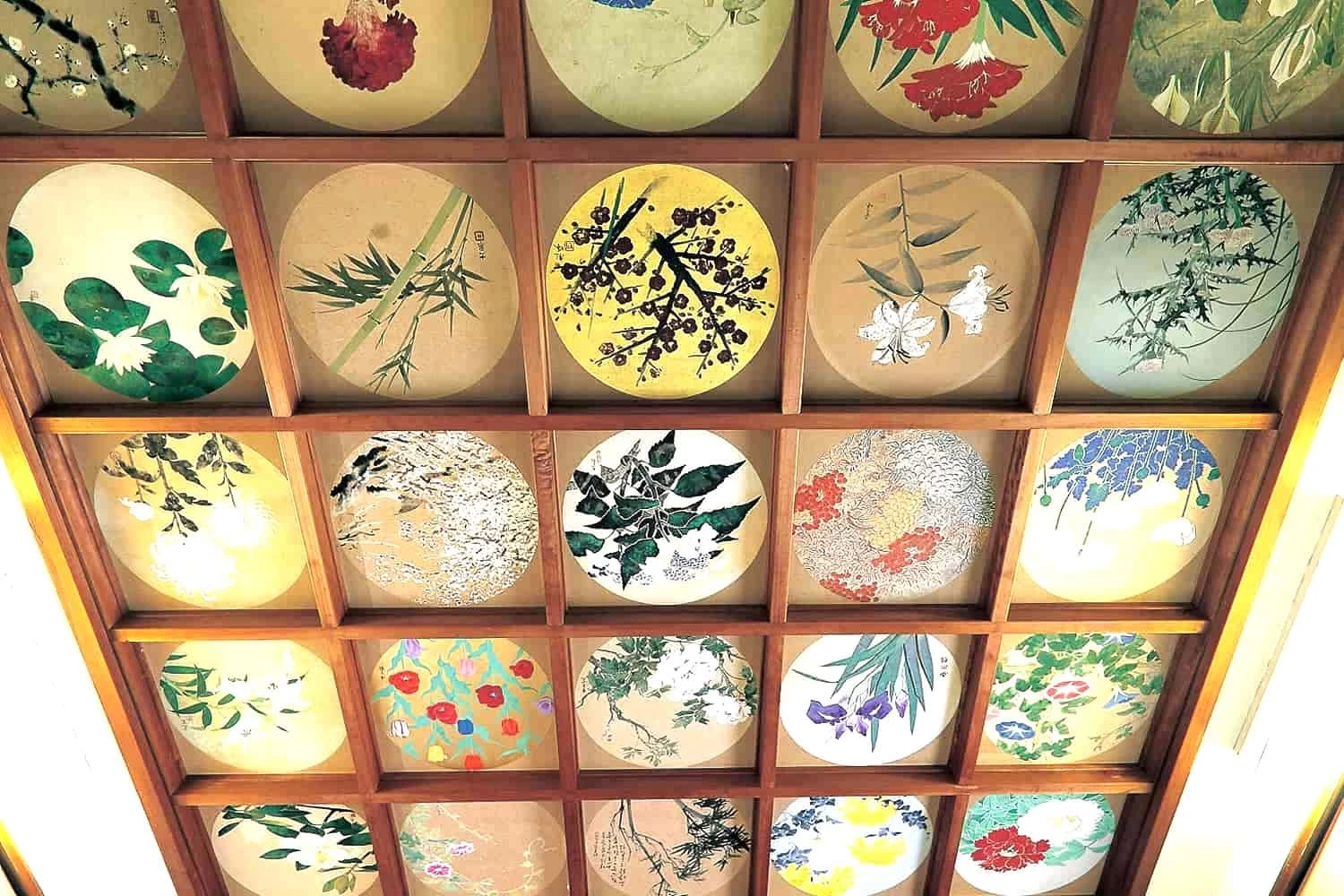 静かで厳かな雰囲気が漂う城宝寺。田原が生んだ幕末の先覚者渡辺崋山の菩薩寺として名高い寺。本堂奥の崋山霊牌堂の天井画では、日本画家の松林桂月をはじめとした有名な画家によって描かれた色鮮やかな草花の絵が見られます。また、境内にある古墳は外から石室の様子をのぞき見ることができ、「穴倉」とも呼ばれています。