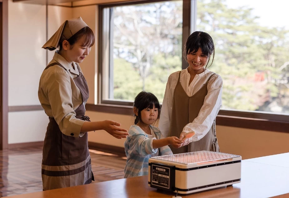 日本三景・松島観光で外せないお土産スポットといえば、創業90余年の「松島蒲鉾本舗 総本店」です。名物の「松島笹かまぼこ」はもちろん、ふわっとした食感のロングセラー「お豆腐揚かまぼこ むう」など、総本店ならではの多彩なラインナップが魅力です。特におすすめなのが、旅の思い出作りにぴったりな「笹かまぼこ手焼き体験」。焼きたての熱々をその場で味わえます。見て、食べて、体験して楽しめる、宮城の旅を彩る名店へぜひお立ち寄りください。