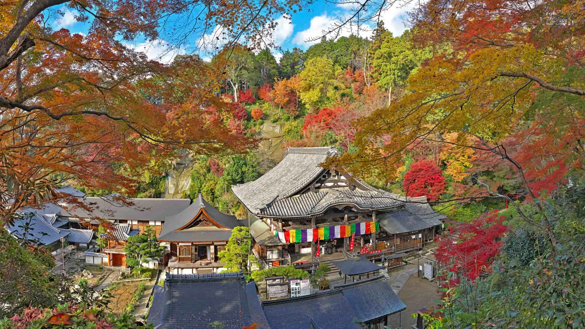 岡寺(おかでら)は、西国三十三所巡礼の第七番札所である日本最初の厄除け霊場です。正式には「龍蓋寺(りゅうがいじ)」と称されますが、地名からくる岡寺の呼び名で親しまれています。秋の岡寺の見どころは、三重宝塔の周辺や本堂の奥、奥の院から境内をぐるりと一周できる岡寺参道です。例年11月下旬になると、一斉に紅葉したモミジがトンネルの様になり、訪れる人を楽しませます。