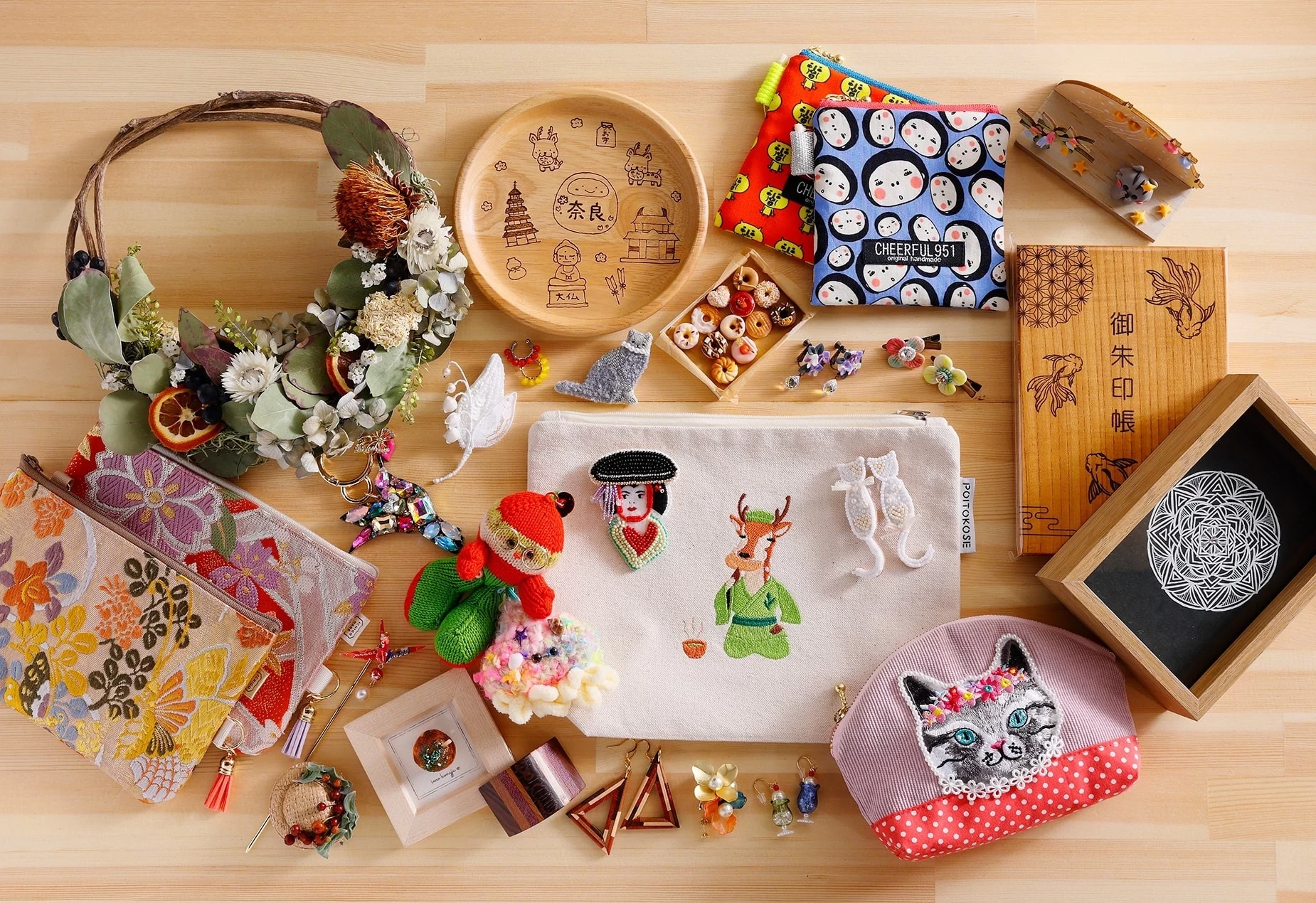 一点もののアクセサリーや陶器、布小物など、作り手の想いが宿るハンドメイド作品に出合える「幸多箱 なら店」。店内には国内外の作品が並び、観光のお土産や大切な方へのギフト探しが“宝探し”のように楽しめます。