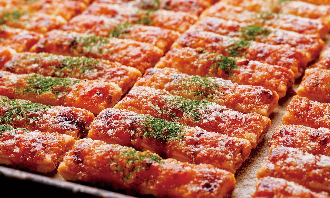 大阪のソウルフードであるたこ焼きを、パティシエが本格洋菓子として再構築した「たこパティエ」。口に入れた瞬間のソースや青のりの香りから、次第にクルミやキャラメリゼの甘いスイーツへと変化する驚きの味わいが魅力です。職人が湿度を見極め手作りするパイ生地は、サクサクとした軽い食感。高級感あるパッケージと配りやすい個包装は、万博の記念やビジネス手土産にもぴったりです。伝統と革新が融合した、大阪ならではの新しい美味しさをお届けします。