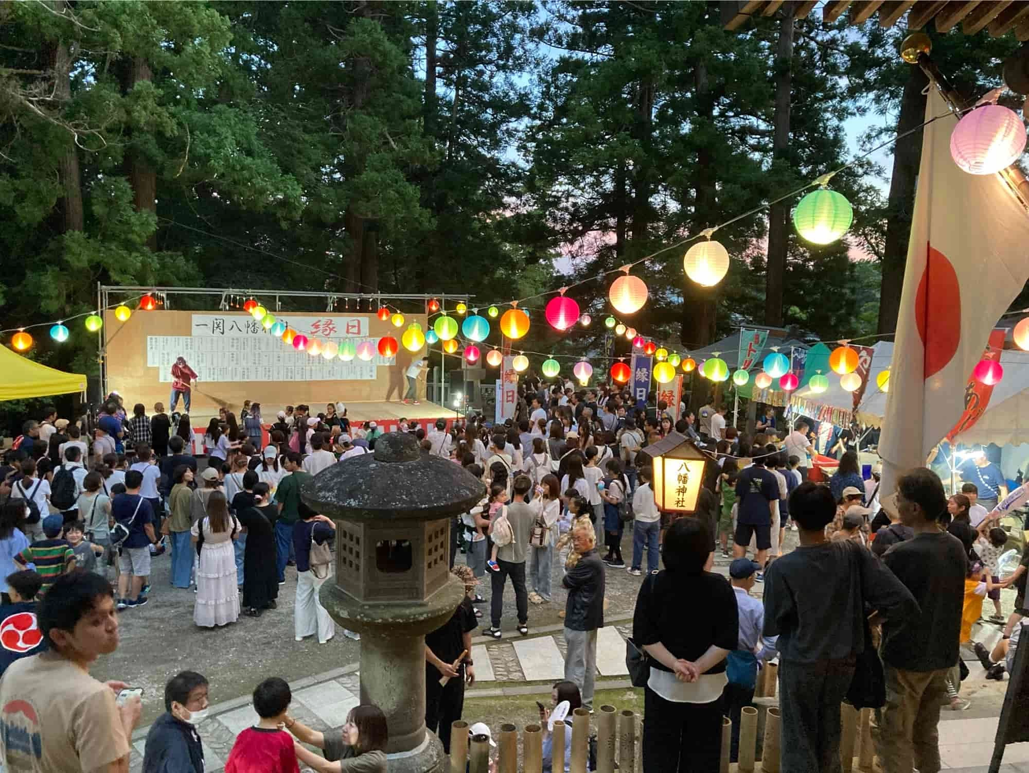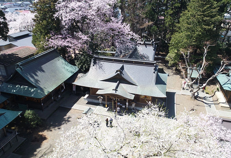 JR東北本線「一ノ関駅」より徒歩約8分、延暦年間(782年~806年)に坂上田村麻呂が東夷平定の際に館山に陣営を敷き、諏訪大社に勝利を祈願したのが始まりとされる神社。境内には社殿のほか、めおと親子杉や竹駒神社、天満宮などが鎮座し、厄祓や商売繁盛など多くのご利益があります。年に1度の9月の例大祭に合わせて開催される「縁日」は屋台の出店やステージ・イベントなどが行われ、多くの人でにぎわいます。