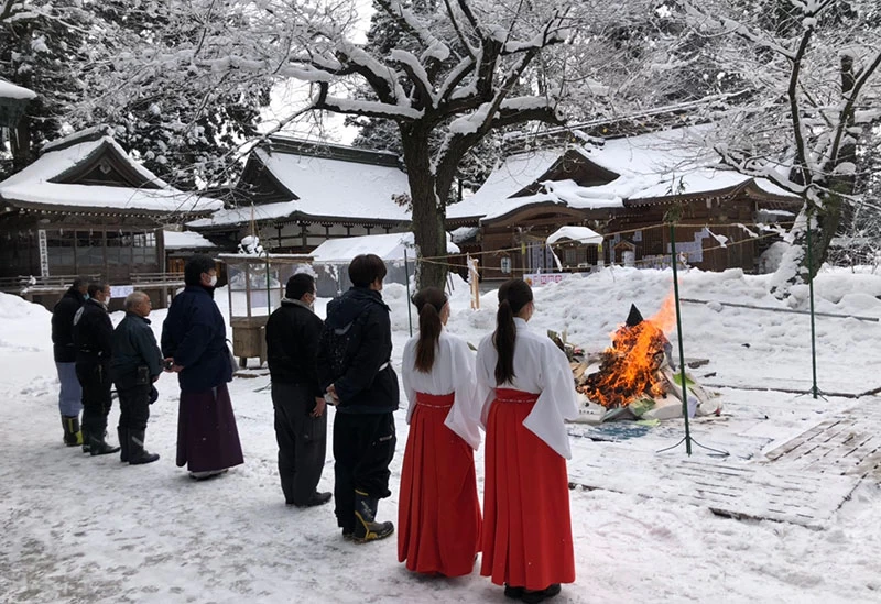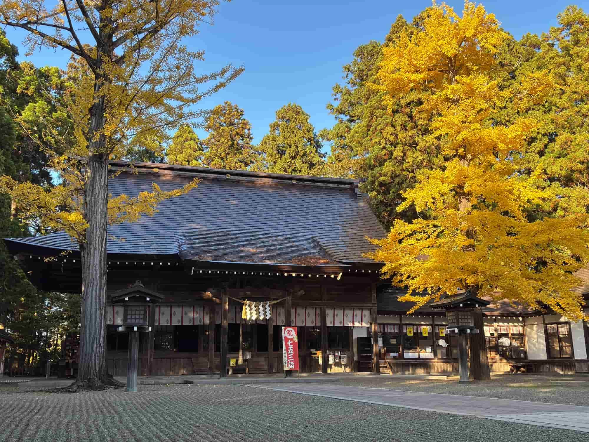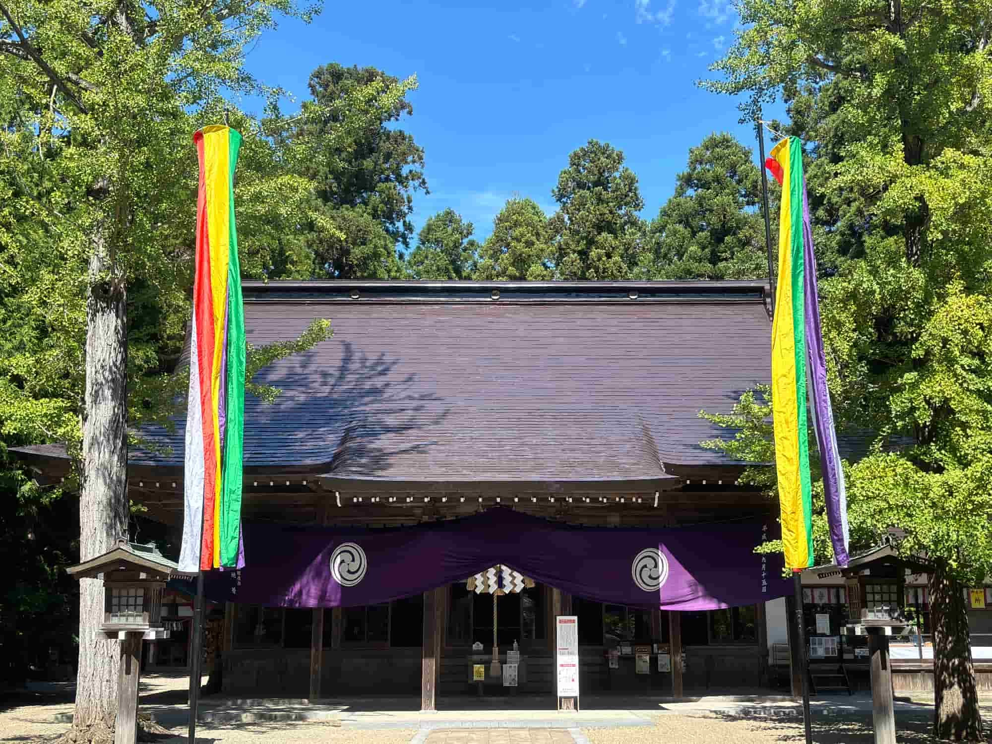 平安時代初期801年に坂上田村麻呂によって創建されたと伝わる東北地方有数の神社。御祭神は八幡大神(やはたのおおみかみ)と称し、應神天皇(おうじんてんのう)、神功皇后(じんぐうこうごう)、市杵島姫命(いちきしまひめのみこと)の三柱で、学問・産業・経済隆盛や邪気祓いにご利益があるとされています。江戸時代に造営された本殿や美しい砂紋が描かれた参道など、古杉に囲まれた境内は厳かな雰囲気に包まれています。御神木の杉の巨木は恋愛成就や良縁にもご利益があるそうですよ。