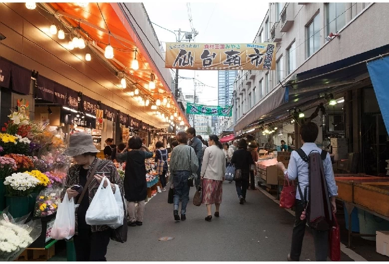 朝市という名称ですが平日朝から夕方まで営業しており、「仙台の台所」ともいわれ地元の人が多く利用する商店街型市場です。通りには、新鮮な魚介類や野菜、果物などを扱う70もの店舗が所狭しと並んでいます。昔ながらのレトロな雰囲気を味わえるのが魅力。温かい人情に触れながら、地元のグルメや旬の味覚を探してみるのもおすすめです。