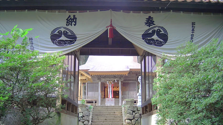 約1300年前に創建されたと言い伝えられている歴史ある神社。地元市民からは「お八幡さま」と慕われています。御祭神は応神天皇(おうじんてんのう)、仲哀天皇(ちゅうあいてんのう)、神功皇后(じんぐうこうごう)、武内宿禰(たけのうちのすくね)の四柱。家内安全や商売繁盛、心願成就、安産などにご利益があるとされています。注目のスポットは、表参道入り口にある100段階段。上りきるとご利益が得られるといわれていますが、人によって段数が変わる不思議な階段としても知られています。そのほか、春の例大祭や夏の「蛍と平家琵琶の夕べ」など、四季折々の行事も見どころのひとつです。
