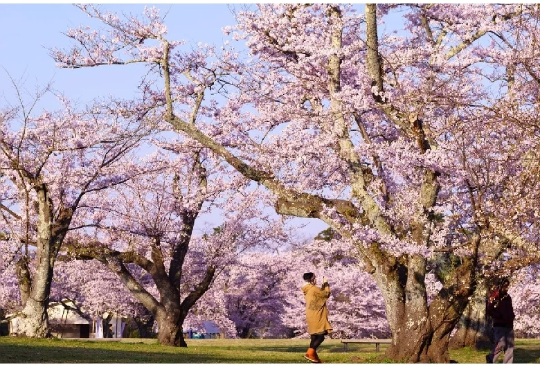 学校や学生寮があった場所に造られた公園で、1967(昭和42)年に開園しました。仙台市内でもっとも多くの桜が植樹されており、仙台南部の桜の名所として知られています。桜の見頃は、例年4月上旬から中旬。ソメイヨシノやシダレザクラ、ヤエザクラが咲き誇る景色は、まさに圧巻です。