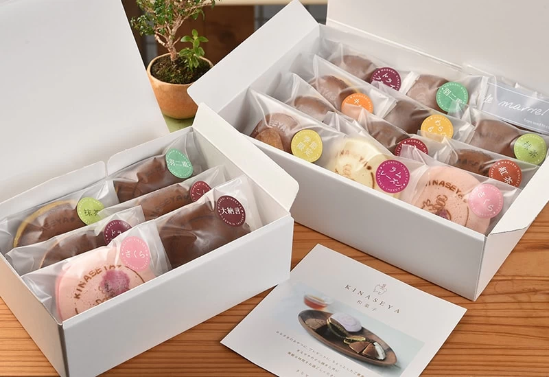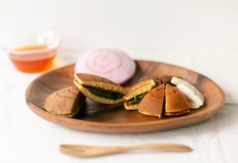 JR堅田駅より徒歩約10分の場所にある「和菓子きなせや」。定番の粒あん(259円)をはじめ、羽二重餅入り、わらび餅(280円)と黒糖こしあん(280円)、ミルク生地とラムレーズン(324円)、6種のドライフルーツあん(334円)、リコッタチーズ×つぶあん(334円)などさまざまなどら焼きを作る専門店。季節のフルーツを使った柚子(334円)もちやキャラメルソースと合わせたりんご(388円)など、季節限定のどらやきはお土産にもぴったりです。地元滋賀県産の食材を厳選して使用し丁寧に一枚一枚手作りで生地を作っており、贈り物としても人気です。