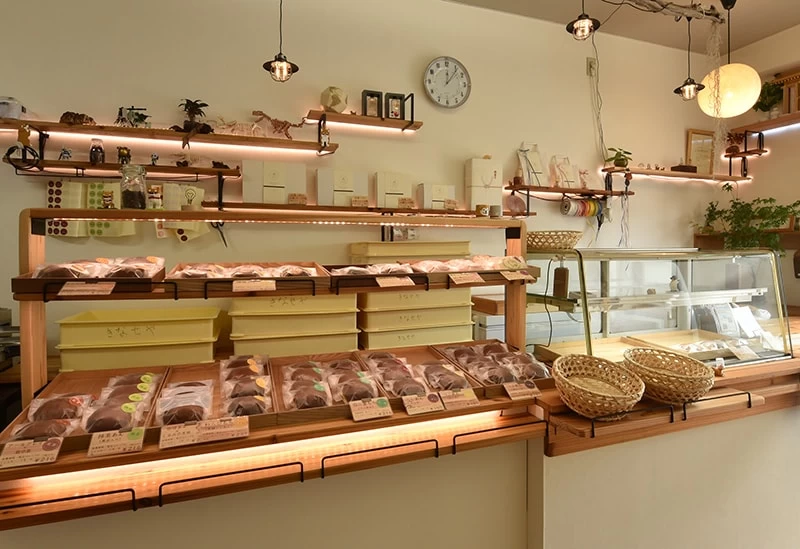 近江鉄道多賀大社前駅より徒歩約13分の場所にある、ランチも楽しめるおしゃれなカフェ。滋賀県内の食材を積極的に使用した生菓子や焼き菓子を販売しており、イートイン限定の月替わりのパフェや昔懐かしいレトロなプリンも味わえます。カカオ分71%のチョコレートと、カカオマス(カカオ100%)を配合し、低温でじっくりと焼きあげたテリーヌショコラ(2,500円)や希少なタヒチ産バニラビーンズをたっぷり使用したクラシックスタイルのカヌレ(4個入1,600円)はお土産にぴったりの逸品です。