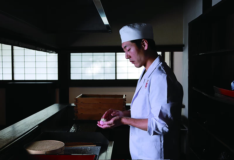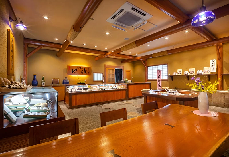 滋賀県大津市に本社を構える「叶 匠壽庵」。JR石山駅より車で約30分の場所にある本社には工場のほか、菓子売り場、お茶室、食事・甘味処、ベーカリーなどがあり、お土産を買いがてら風光明媚(ふうこうめいび)な景色を眺めながら食事やお茶が楽しめます。