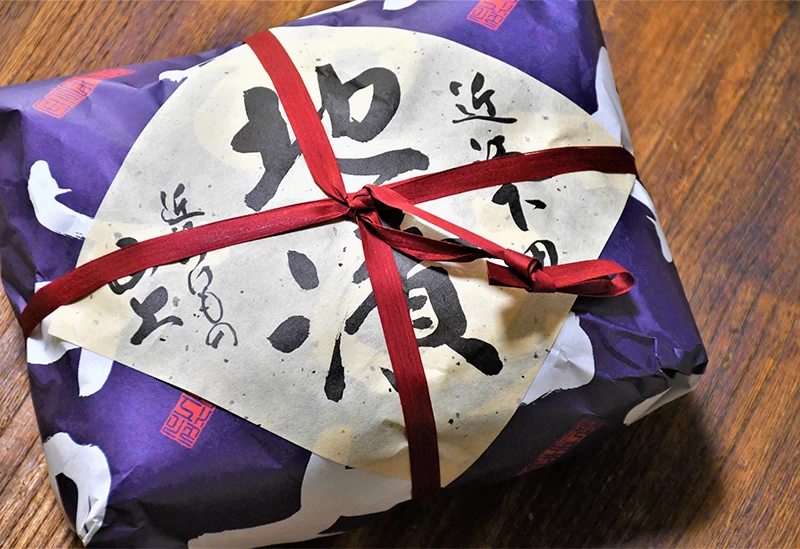 こしあんの持つなめらかな口あたりを最大限に引き出し、しっとりとやわらかな羽二重餅を包んだ代表銘菓「あも」(1,296円)は四季折々の装いに変わるパッケージも魅力のひとつ。滋賀のお土産として喜ばれる逸品です。