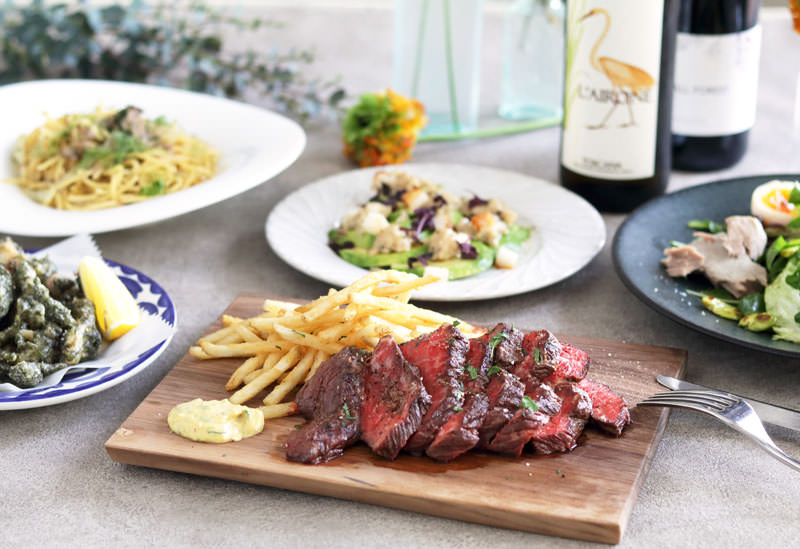 新宿御苑から徒歩圏内にあるモダンなカフェ。名物のハンバーガーをはじめ、パスタや新鮮なサラダ、ドリンクも充実しており、ピクニックバスケットに詰めたくなるようなメニューが揃います。