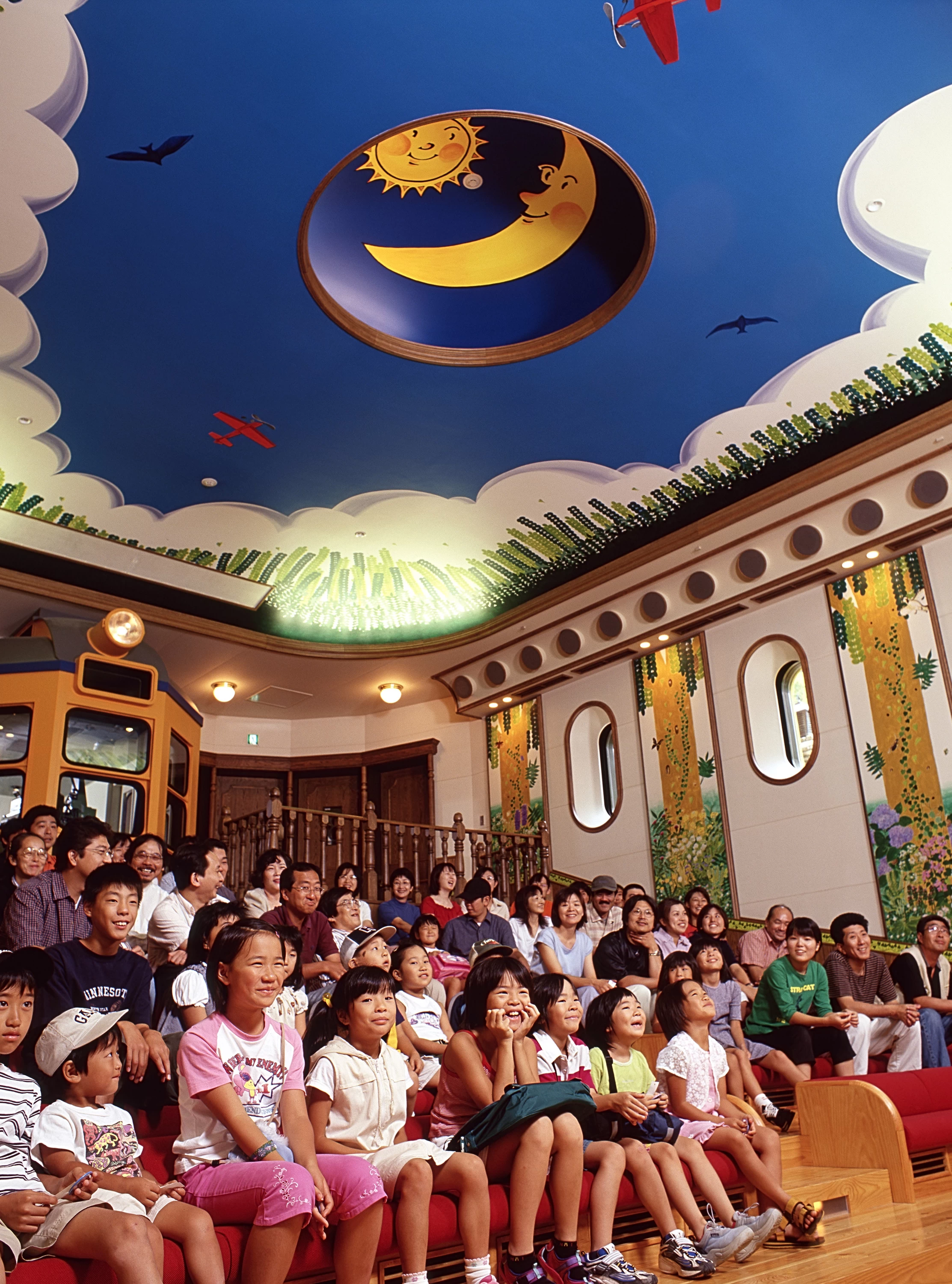 「三鷹の森ジブリ美術館」は、それ自体が1本の物語のような不思議な作りの美術館です。主人公になったつもりで、迷路のように入り組んだ建物内を探検したり、屋上庭園で「天空の城ラピュタ」のロボット兵と記念撮影をしたりと、さまざまな方法で楽しめます。小学生以下のお子さんは「ネコバスルーム」でふかふかのネコバスに乗って遊ぶことも可能。館内シアターでは、スタジオジブリ制作のオリジナル短編アニメを鑑賞できます。