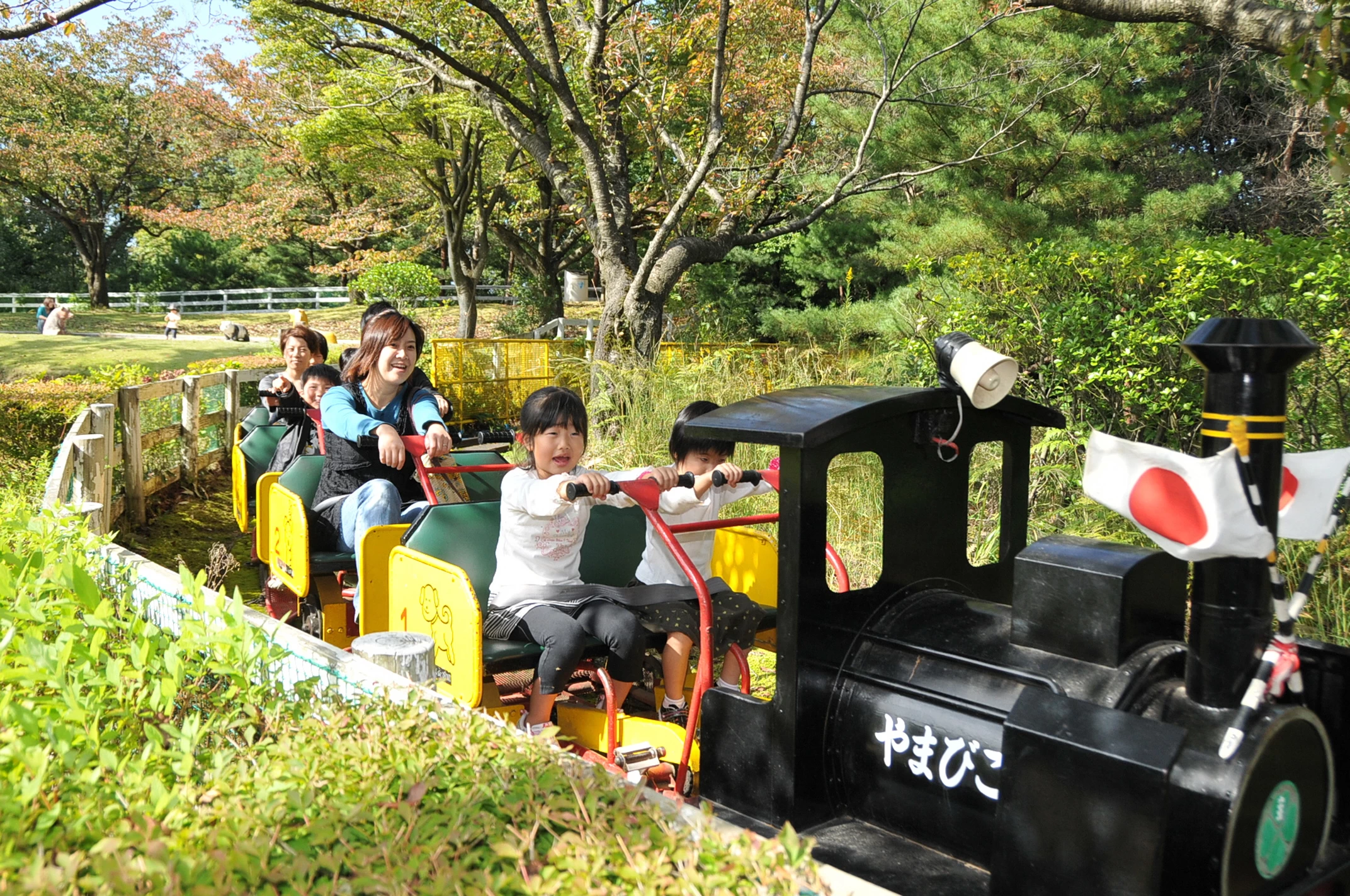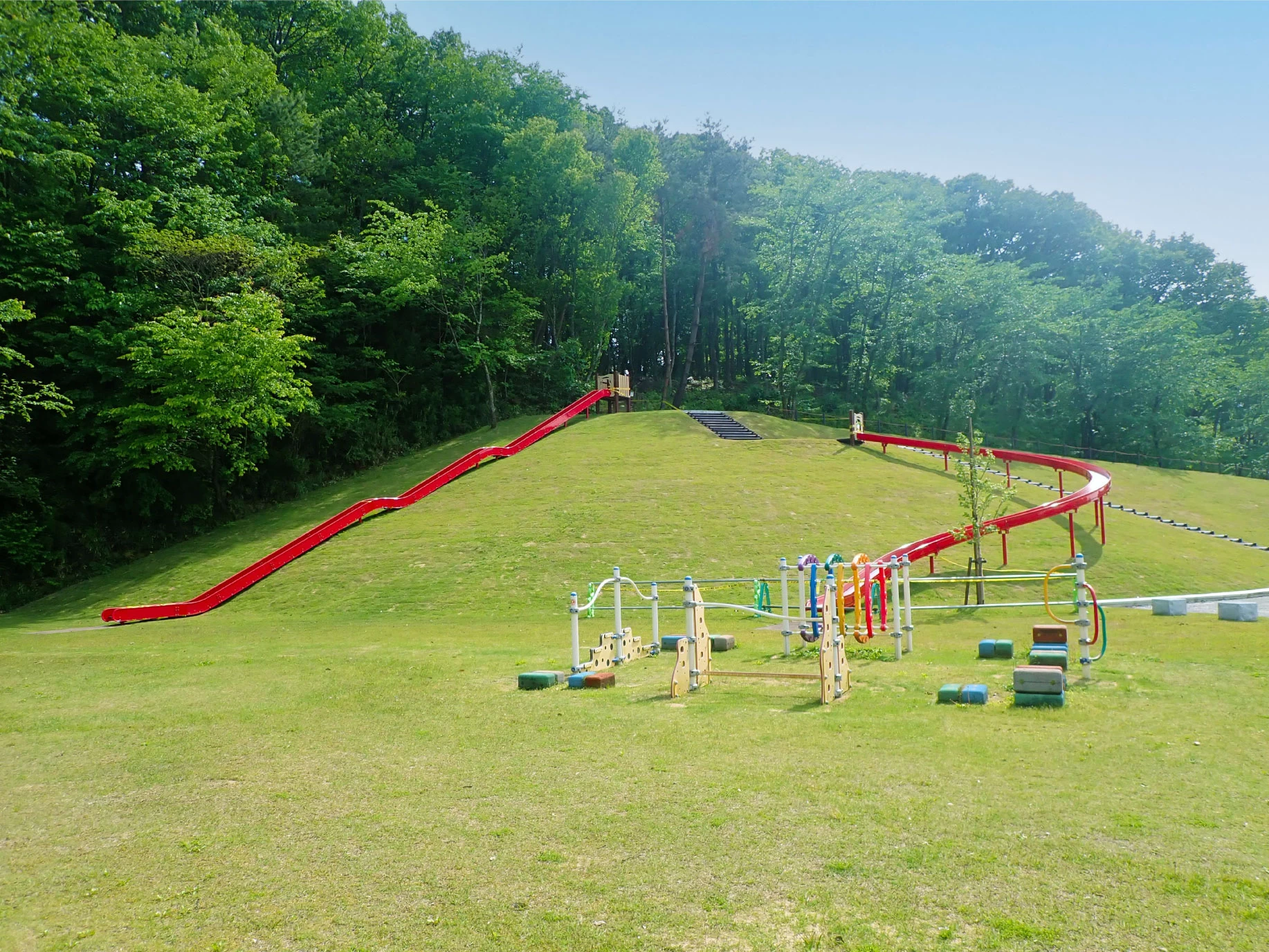 丘陵地の豊かな自然を利用した、遊びとスポーツを楽しめる公園。広大な芝生広場をはじめ、長さ40mのローラーすべり台やアスレチック、変形自転車、スワンボートなど、親子で思いきり体を動かせる施設が揃っています。さらには県内最大級の規模を誇るテニスコートや、天候を気にせず楽しめる温泉プールも備わり、過ごし方はまさに千差万別。外遊びもリラックスも叶う一日が過ごせます。