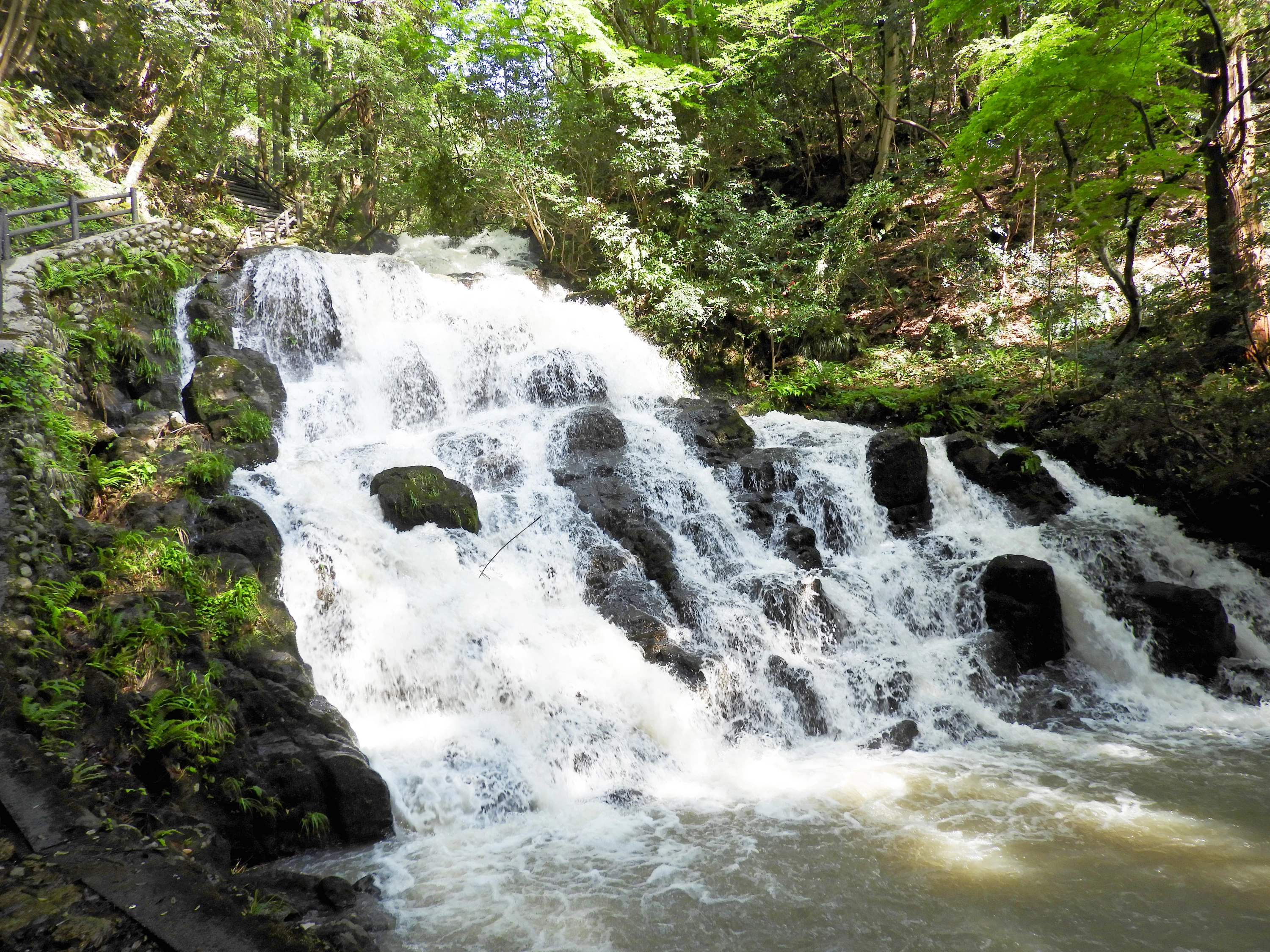 「大滝」と呼ばれる一の滝から、瀧浪神社前の七の滝まで、大小7つの滝が連なる「七ツ滝」。全長約1km、総落差約50mの滝景色は市の名勝にも指定されており、新緑から雪景色の頃までさまざまな光景を楽しめるスポットです。上流の6つの滝は遊歩道が整備されており、散策が可能。写真撮影に訪れる人も少なくありません。希少な植物や野鳥など多様な動植物にも出合える自然豊かな場所なので、ぜひ歩きやすい格好で足を運んでみてください。