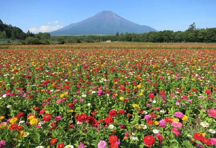 富士山と四季折々の花々のコラボレーションが見られる、山中湖花の都公園。有料エリアには溶岩樹型地下や明神の滝、チューリップやネモフィラが咲き乱れる様子などが見られる清流の里があります。無料で入れる花畑・農園エリアもあり、旬の花を見て歩いても良さそうです。犬連れの方でも入場でき、ペットと一緒に美景を満喫できます。8月~10月にはひまわりやコスモスが見頃を迎え、圧巻の景色が広がっていますよ。