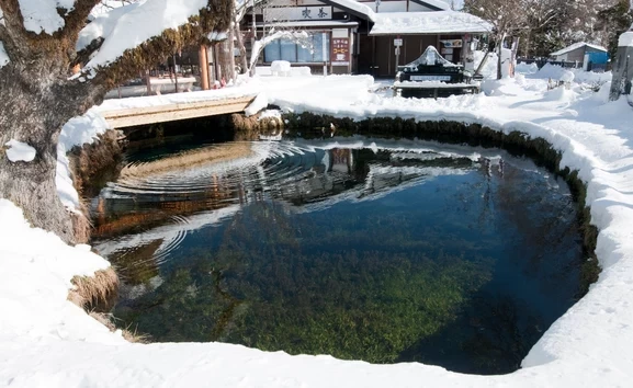 昭和9年に天然記念物、昭和60年に名水百選、平成25年に世界文化遺産に登録された忍野八海。8つの池に分かれており、透明度が高い池で魚がのびのびと泳いでいます。1時間~2時間あれば見て回れる広さで、山中湖を訪れたあとに立ち寄ってみてもよいですね。池だけでなく茅葺き屋根の建物もあり風情が感じられるほか、資料館からは富士山とのコラボレーションを望めます。湧水をその場で飲むのはもちろん、持ち帰りもできるためお土産で人気です。