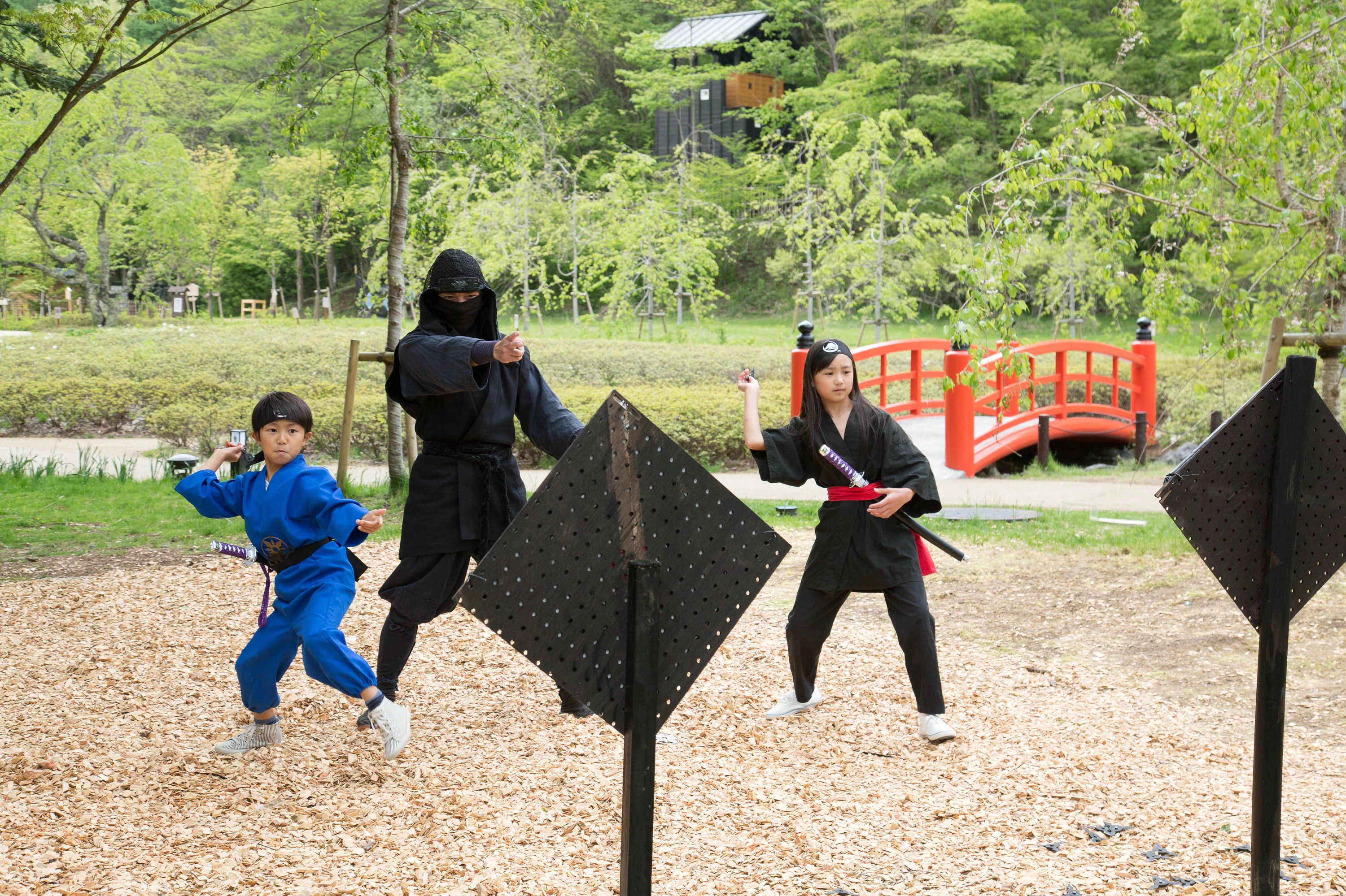 忍者の衣装を着たり、手裏剣の腕を磨いたりと忍びをテーマにした忍野しのびの里。約20分の忍者ショーは、まるで忍者がいる世界にタイムスリップしたような気分を味わえます。からくり屋敷には、頭を使いながら先へ足を進められるような仕組みが隠されているため、年代問わず楽しめるでしょう。扉や抜け道などを見つけながら、隠密行動をしている気分で進められますよ。免許皆伝の証明書をもらえる道場もあり、子ども連れにもおすすめです。