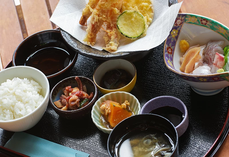 舞鶴港に水揚げされた海の幸や加工品を販売する、日本海側でも屈指の大きさを誇り、広大な駐車場がある海鮮市場は、京都府漁業協同組合舞鶴魚市場の仲買人が出店しており、鮮度抜群の豊富な魚と安さが自慢。目の前に並べてある海鮮がその場で味わえるのが魅力で、各地から多くの人が車や観光バスで買い物に訪れ、連日にぎわっている。