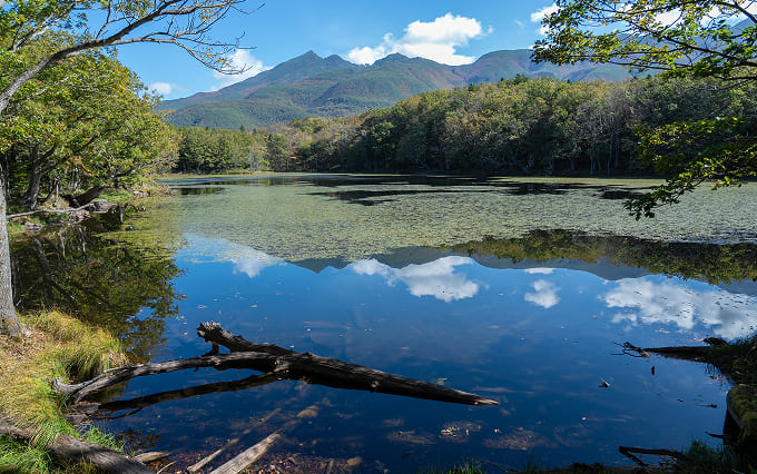 - 知床五湖では、原生林を背景に佇む5つの湖と知床連山が静寂の中で映し出され、風が止んだ瞬間には湖面が鏡のように木々や山並みを映す絶景が広がる。