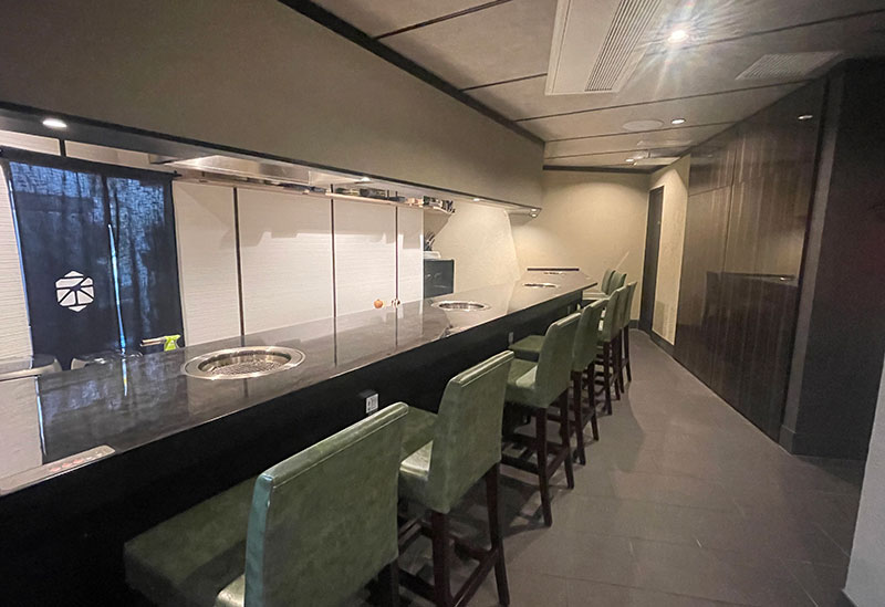 「有馬焼肉 丞-TASUKU-」のディナーコースには、神戸ビーフのステーキがいただけるコース(100g1万6,000円・150g2万円)と、特選黒毛和牛がいただけるコース(100g1万1,000円・150g1万3,000円)の2種類があり、それぞれ17時~と19時~の完全2部制となっています。