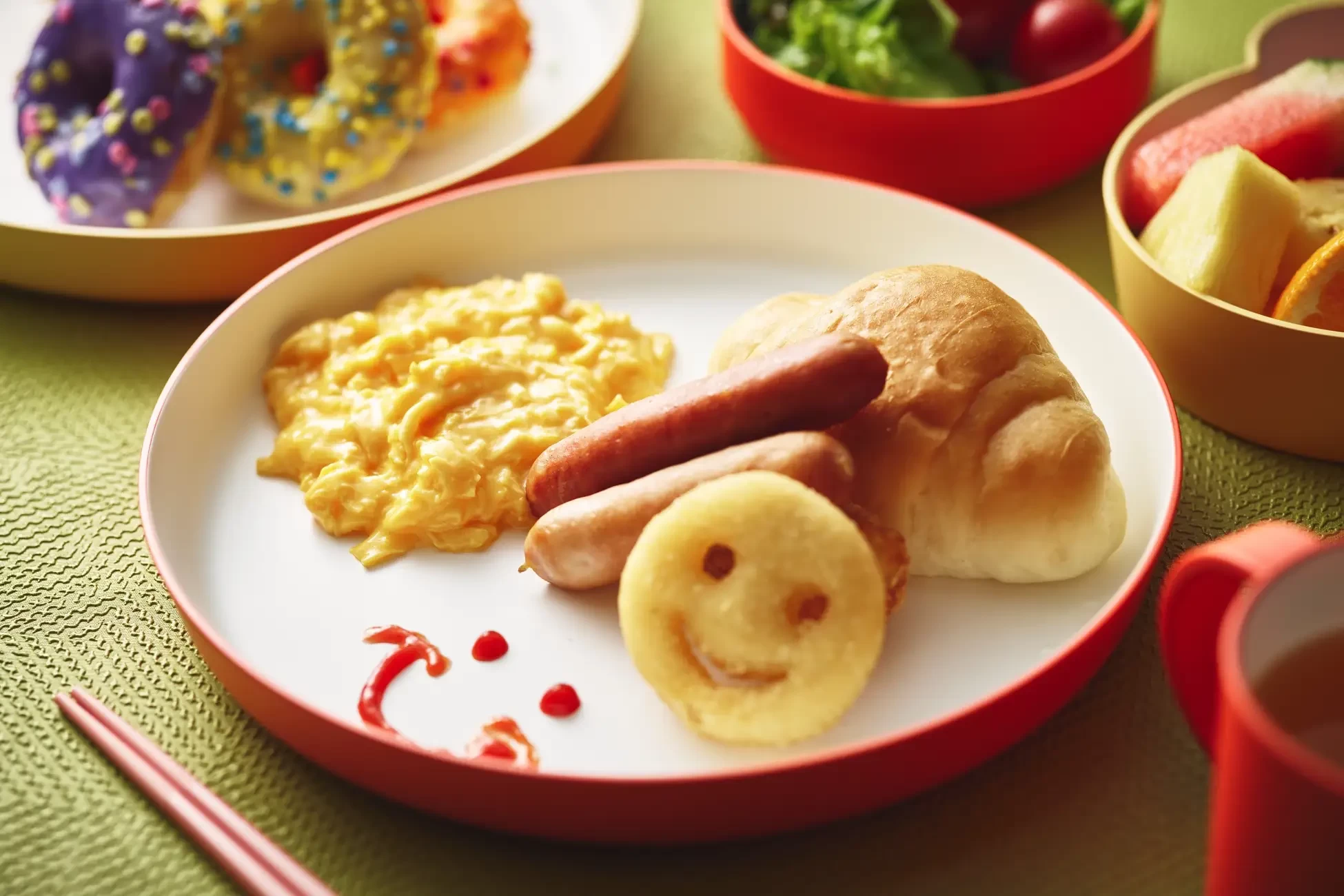 レストランには子ども専用のビュッフェコーナーをご用意。キャラメルポップコーンなど、お子さんが大好きなメニューを取り揃えています。