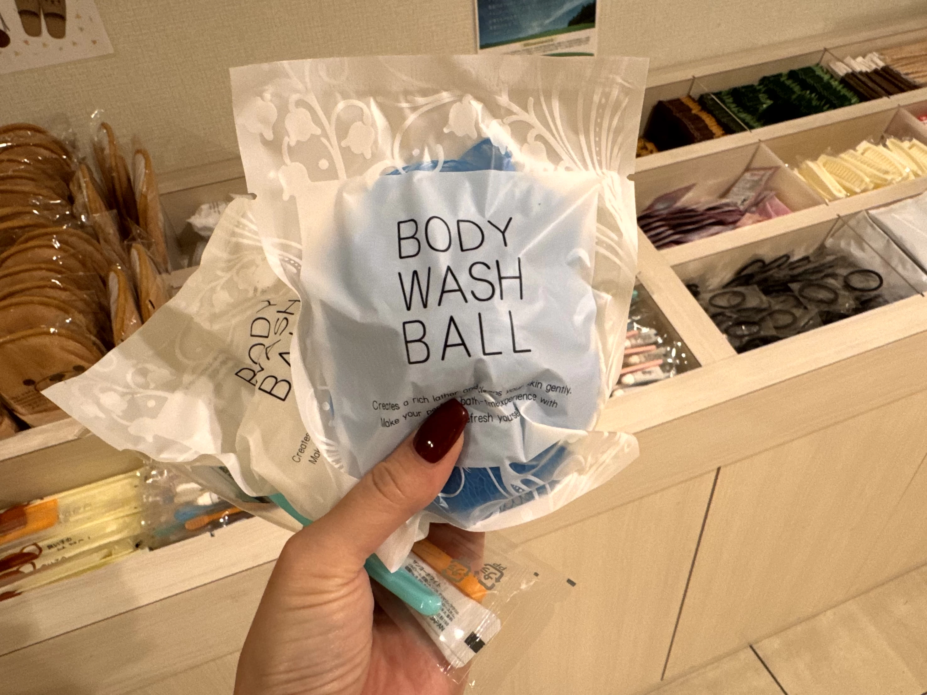 その中で、個人的に「これは神!」と唸ったのが「ボディスポンジ」です。ビジネスホテルだとペラペラのボディタオルしかないことが多いですが、ここにはしっかりとしたスポンジが置いてありました。ユニバで一日中遊ぶと、日焼け止めと汗で体はベタベタになります。そんな時、しっかり泡立つスポンジで体を洗えるのは本当に気持ちいい! 連泊でも毎日新しいものが使えるので衛生的です。