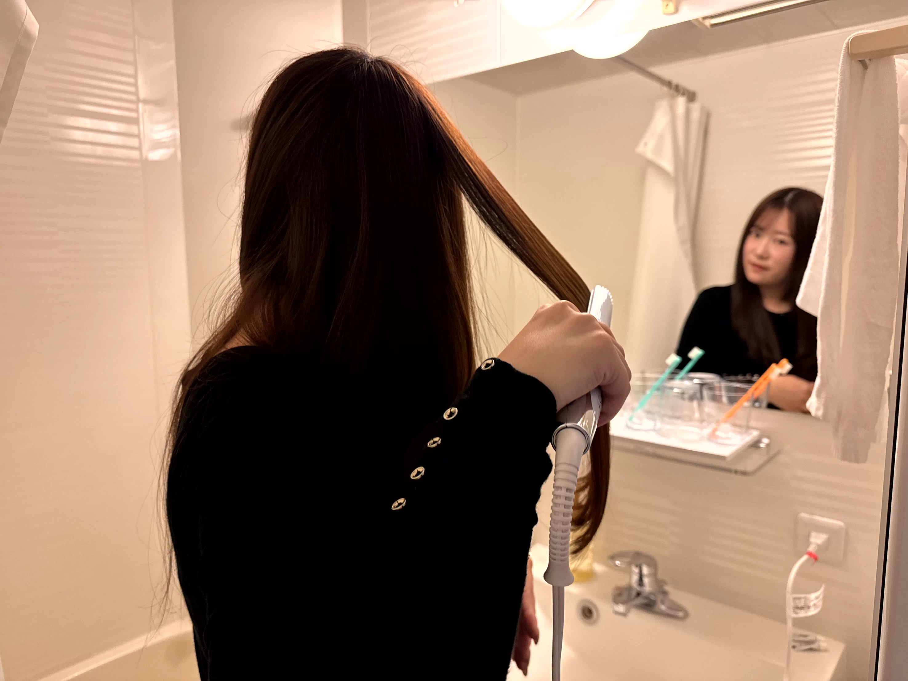 「ホテルの貸出アイロンって、温度が低かったり使いにくかったりするんだよな…」という不安を一蹴するハイスペック機材。おかげで、今回の旅行には、自宅からアイロンを持ってくる必要がありませんでした。荷物が軽くなるし、高級アイロンで髪はツヤツヤになるし、一石二鳥です。
