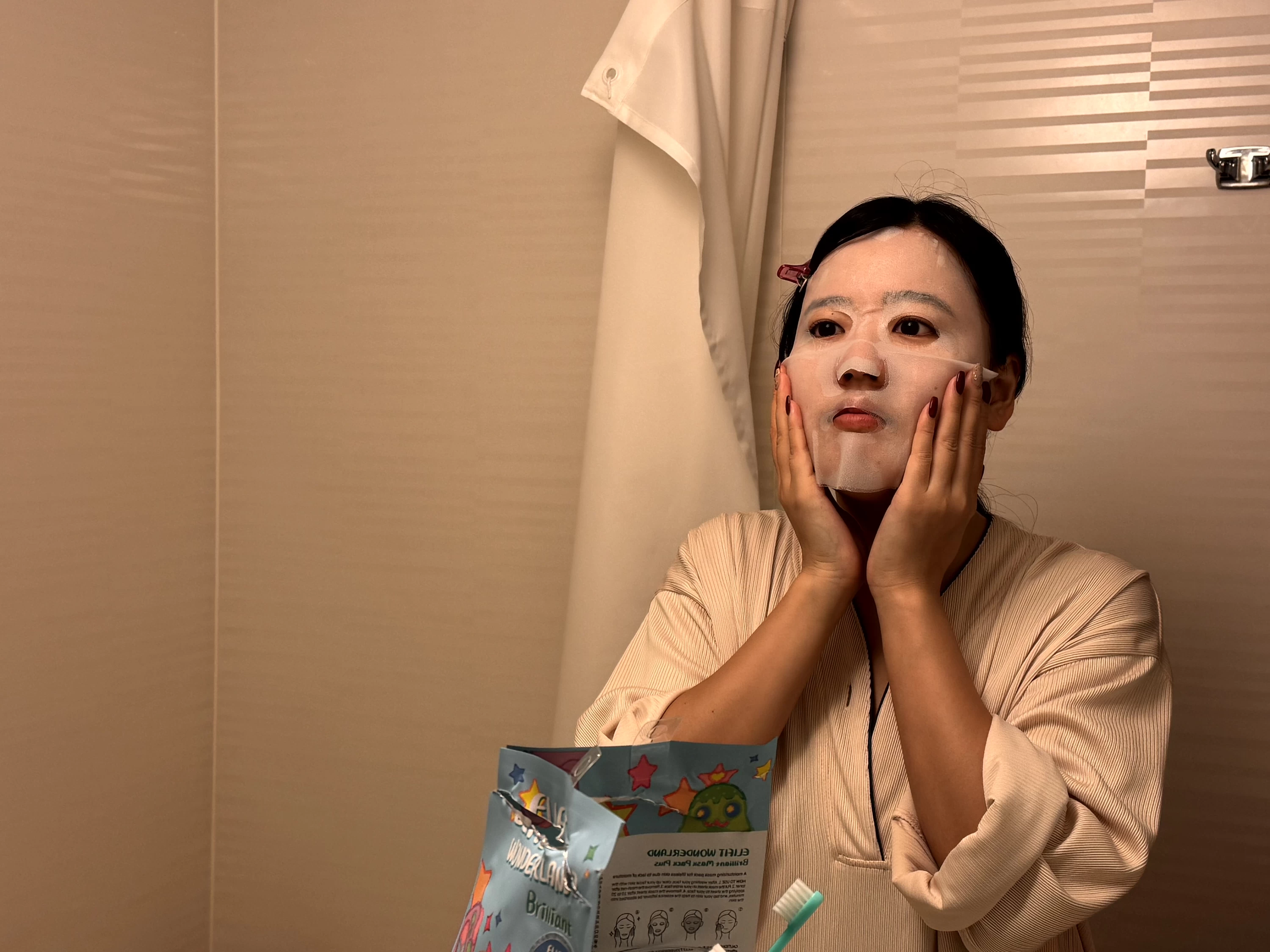 チェックイン時に渡されたのは、韓国コスメを中心とした「ミニスキンケア5点セット」。 中身を見て驚きました。ただの試供品セットではありません。 特に嬉しかったのが、「ナイアシンアミド」配合のマスクパック。美容好きなら誰もが知る、肌荒れ防止や美白に効果が期待できる成分です。
