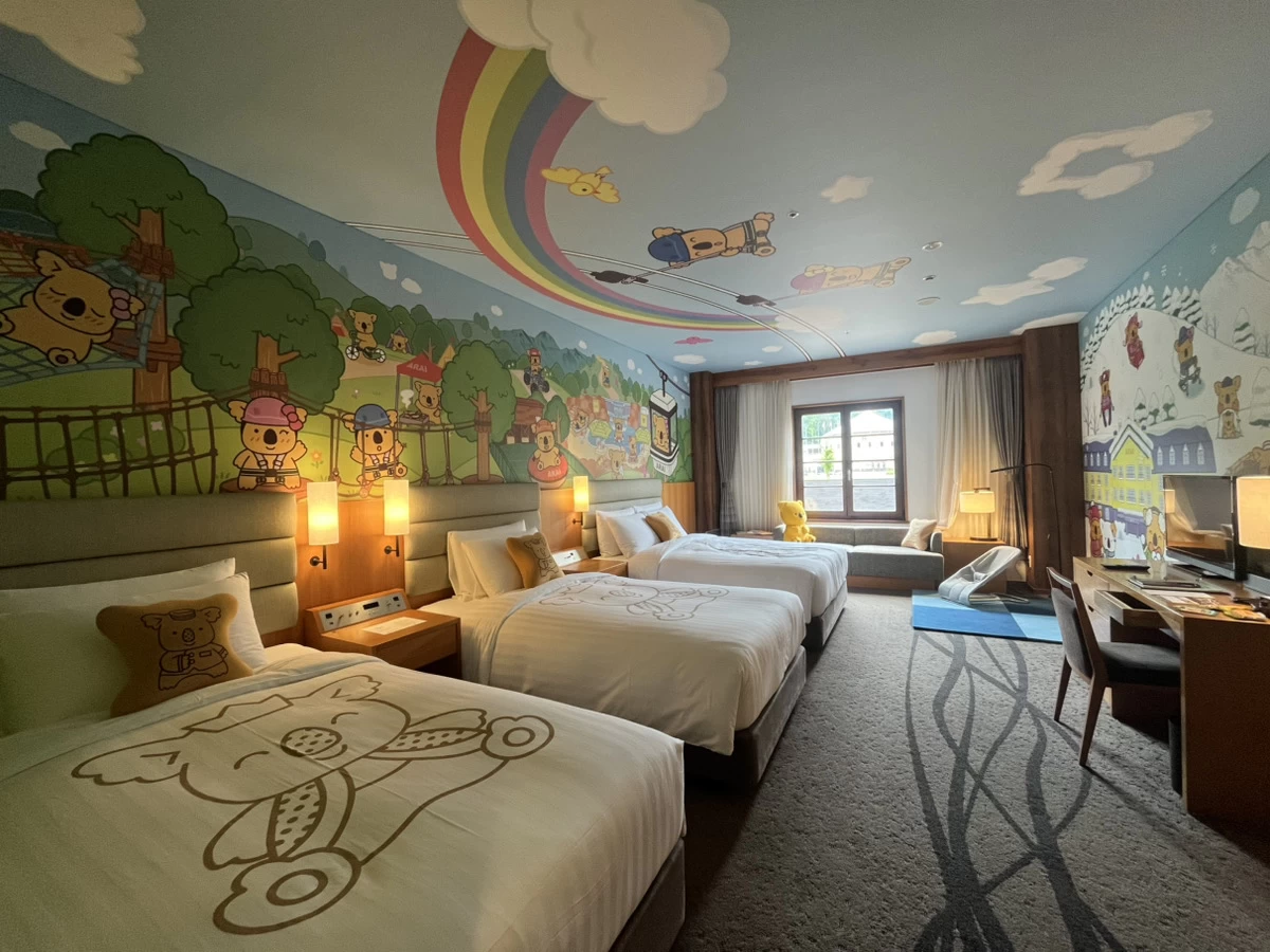 なかでも人気なのが「コアラのマーチルーム」。全4部屋限定で、壁紙やクッションなど細部にまで“コアラのマーチ”がデザインされており、小さなお子さん連れのご家族に大人気!