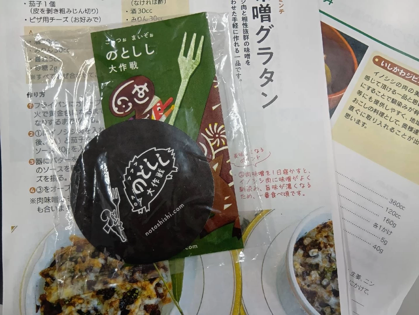 帰宅後は、併せていただいた「いしかわジビエ料理レシピ集」を参考にして「肉味噌グラタン」を作りましたよ! 優しい甘みのある脂と、心なしか引き締まっていて噛むほど旨みがあふれるイノシシ肉は、味噌との相性が抜群! ピザ用チーズをかけて食べると、スプーンが止まらない一品になりました!