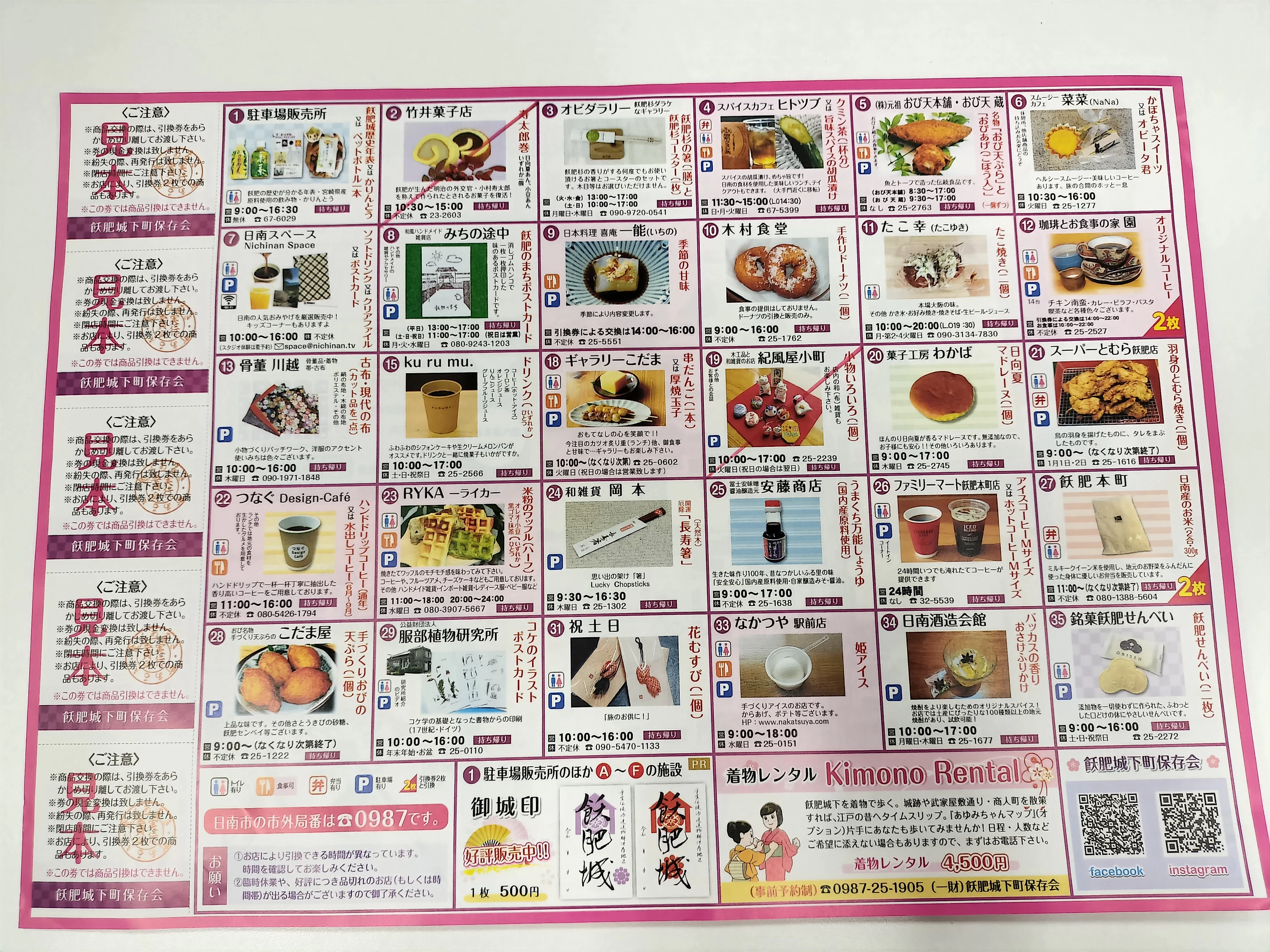 どちらも「あゆみちゃんマップ」(案内マップ)の引換券を利用するとお得に楽しめるので、ぜひ活用して飫肥の味覚を満喫してください。