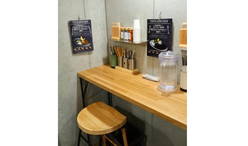 ルーやスープの種類やトッピング、辛さの組み合わせで自分好みのカレーが完成しますが、席にはコリアンダーやターメリックなどのカレーに欠かせないスパイスや、七味唐辛子、あおさなど和のスパイスなども揃っているので、お皿のうえで自分好みの味を追求することも可能。