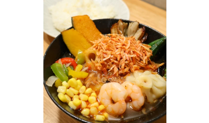 山盛り小海老の海老 東京スープカレー980円+トッピング:小籠包エビセット280円